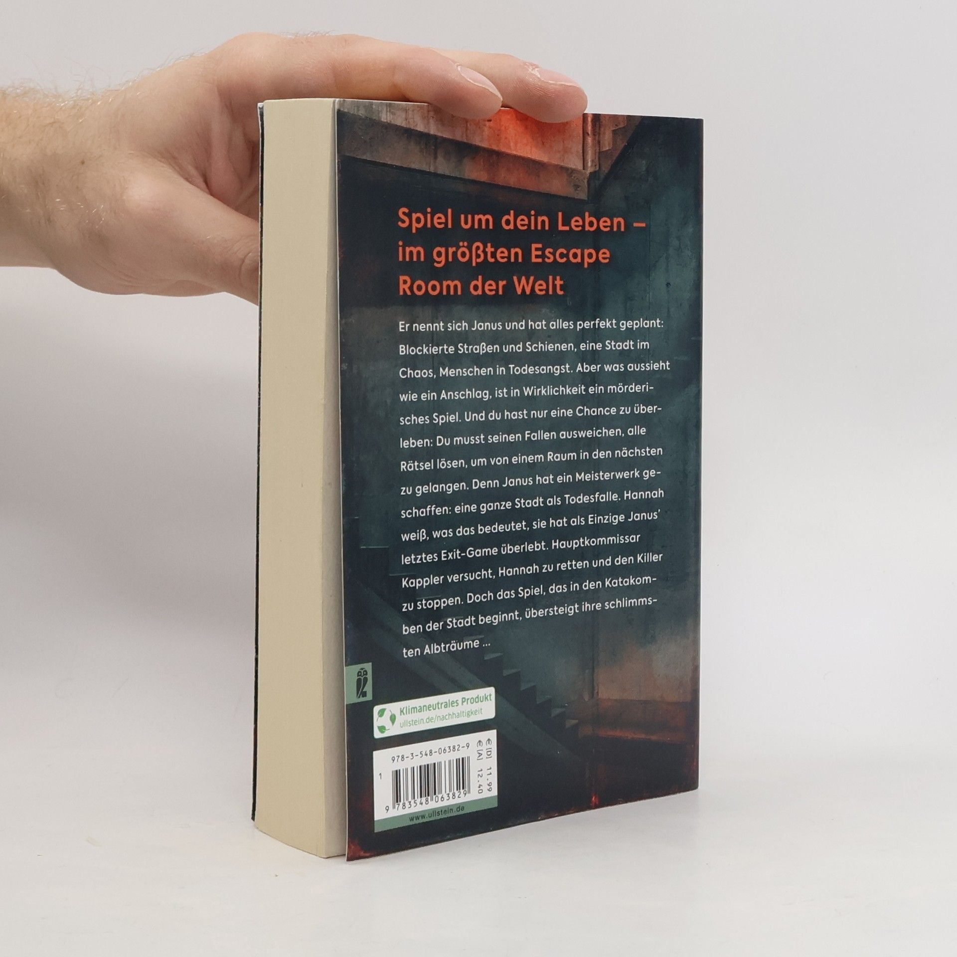 Spiel um dein Leben – im größten Escape-Room der Welt Er nennt sich Janus und hat alles perfekt geplant: Blockierte Straßen und Schienen, eine Stadt im Chaos, Menschen in Todesangst. Aber was aussieht wie ein Anschlag, ist in Wirklichkeit ein Spiel. Und du hast nur eine Chance zu überleben: Du musst besser sein als er, seinen Fallstricken ausweichen und alle Rätsel lösen, um von einem Raum in den nächsten gelangen. Denn Janus hat ein Meisterwerk geschaffen: eine ganze Stadt als Todesfalle. Hannah weiß, was das bedeutet, sie hat als Einzige Janus' letztes Exit-Game überlebt. Hauptkommissar Kappler versucht, Hannah zu retten und den Killer zu stoppen. Doch das Spiel, das in den Katakomben der Stadt beginnt, übersteigt ihre schlimmsten Alpträume ...