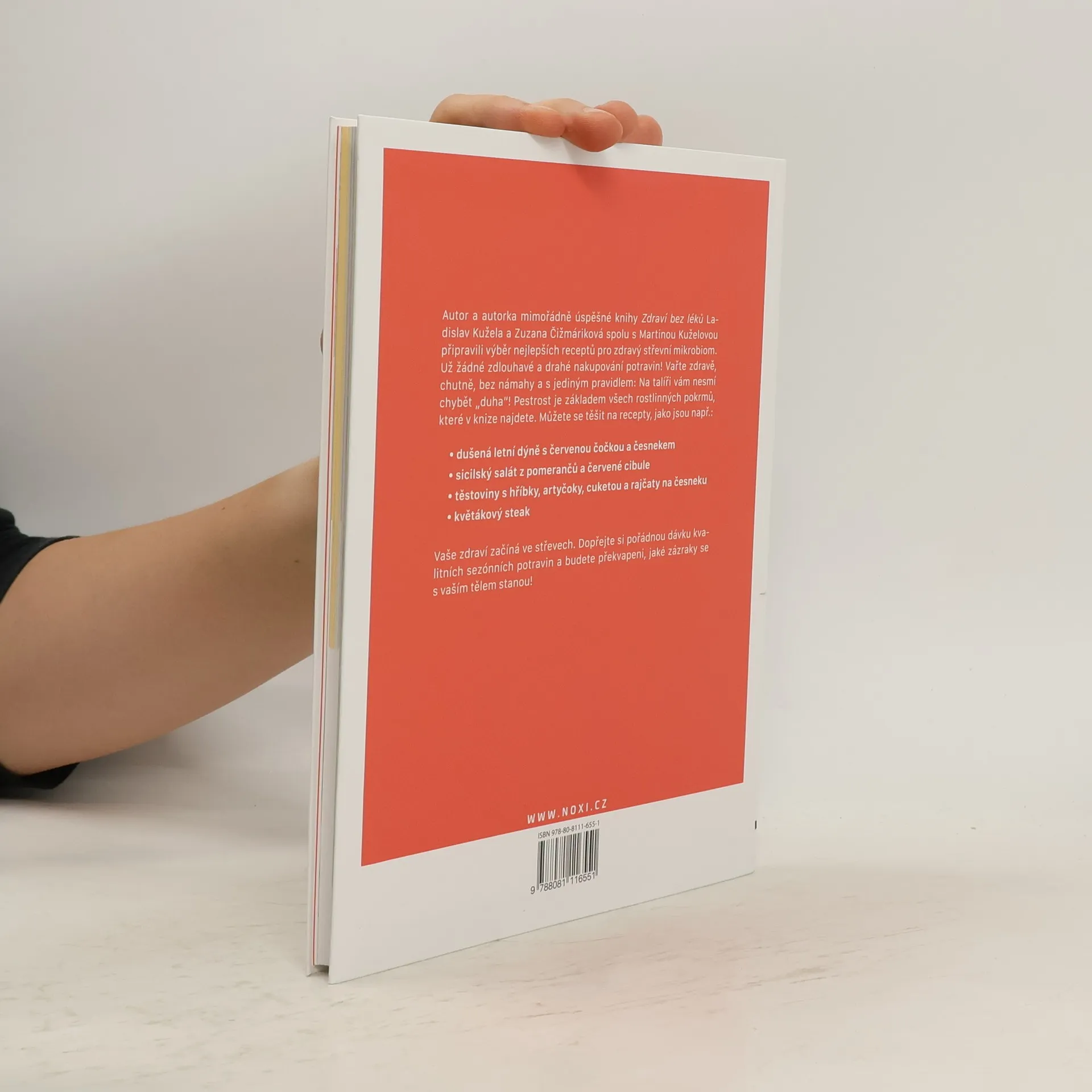 Přestaňte počítat kalorie a zaměřte se na kvalitu potravin. Zejména na ty sezónní. Uvidíte, jaký zázrak se s vaším tělem stane! Pokud očekáváte knihu o nejlepší dietě nebo recepty na zázračné hubnutí z prášku nebo jak se dostat do formy za 5 dní, tato kniha vám rozhodně nepomůže. Pokud vám však opravdu záleží na vašem celkovém zdraví, pokud chcete znát „tajemství“ zdravého a aktivního života, pak jste našli přesně to, co potřebujete. Váš jídelníček by měl být založen na pestrosti. Dobré střevní a celkové zdraví je velmi jednoduché a hravé – „duha na talíři“. Potěšte své střevní mikroby i sami sebe a výběr a příprava jídla vás začne bavit! Recepty nabízené v této knize obohatí váš jídelníček o rozmanité pokrmy rostlinného původu. Autoři úspěšného knižního titulu Zdraví bez léků, renomovaný slovenský gastroenterolog doc. Ladislav Kužela, PhD. a Zuzana Čižmáriková, PhD., tentokrát doplnili svůj tým o vášnivou „kuchařku“ Martinu Kuželovou. Na základě jídel rodiny Kuželových vznikla kniha zdravých receptů, které si můžete uvařit i vy, aniž byste museli vyprázdnit peněženku a shánět suroviny v různých obchodech. „Ať je jídlo vaším lékem.“ Hippokrates