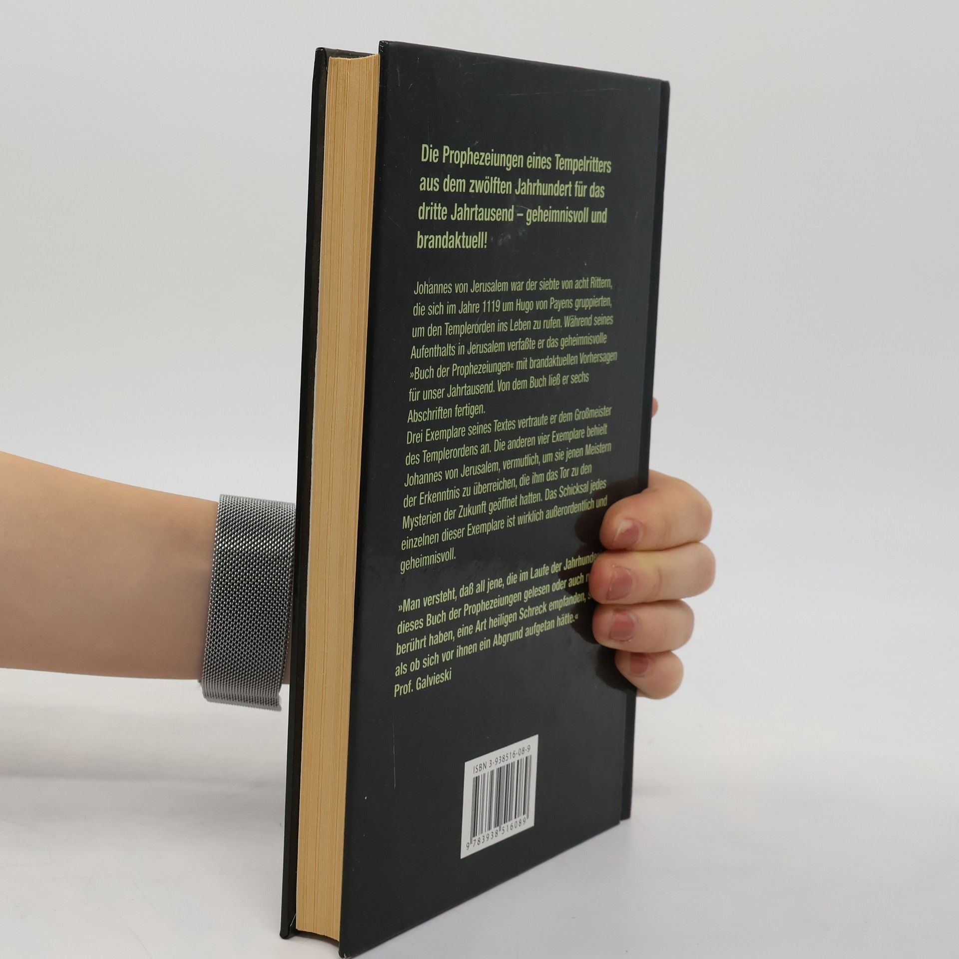 Johannes von Jerusalem war einer der Gründer des Templerordens im Jahr 1119 unter Hugo von Payens. Während seines Aufenthalts in Jerusalem verfasste er das geheimnisvolle 'Buch der Prophezeiungen', das Vorhersagen für unser Jahrtausend enthält. Er ließ sechs Abschriften anfertigen: Drei übergab er dem Großmeister des Templerordens, während er die übrigen vier behielt, um sie den Meistern der Erkenntnis zu überreichen, die ihm Zugang zu zukünftigen Mysterien ermöglichten. Das Schicksal dieser Exemplare ist außergewöhnlich. Nach der Festnahme von Jacques de Molay und vielen Templern im Jahr 1307 wurde das Buch als 'Diktat des Teufels' bezeichnet, um die Templer mit dem Bösen in Verbindung zu bringen. Nur zwei der sieben Ausfertigungen überdauerten die Zeit: Eine befindet sich in den Geheimarchiven des Vatikans und wird neuen Pontifexen vorgelegt. Die andere wurde 1945 von Stalins Geheimpolizei im Führerbunker Hitlers entdeckt, mit handschriftlichen Notizen in deutscher Sprache. Diejenigen, die das 'Buch der Prophezeiungen' im Laufe der Jahrhunderte lasen oder berührten, empfanden offenbar einen heiligen Schrecken, als ob sich vor ihnen ein Abgrund auftat.