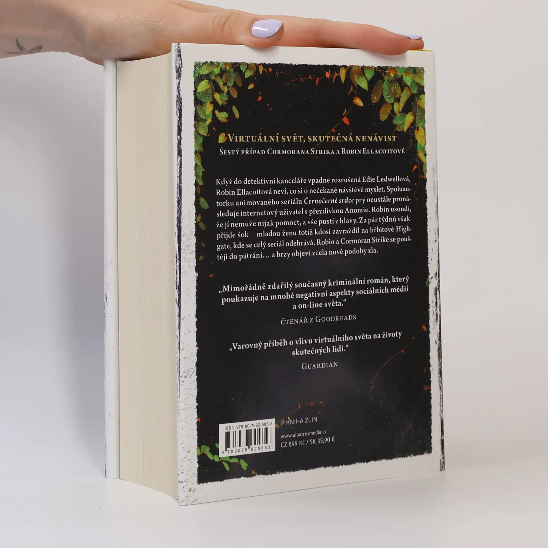 Když do detektivní kanceláře vpadne rozrušená Edie Ledwellová, Robin Ellacottová neví, co si o nečekané návštěvě myslet. Spoluautorku animovaného seriálu Černočerné srdce prý neustále pronásleduje internetový uživatel s přezdívkou Anomie. Robin usoudí, že jí nemůže nijak pomoct, a vše pustí z hlavy. Za pár týdnů však přijde šok - mladou ženu totiž kdosi zavraždil na hřbitově Highgate, kde se celý seriál odehrává. Robin a Cormoran Strike se pouštějí do pátrání a brzy objeví zcela nové podoby zla. "Mimořádně zdařilý současný kriminální román, který poukazuje na mnohé negativní aspekty sociálních médií a on-line. Zároveň se autorka dobře vypořádala s problémem, kterým si sama musela projít." čtenář z Goodreads "Varovný příběh o vlivu virtuálního světa na životy skutečných lidí." Guardian