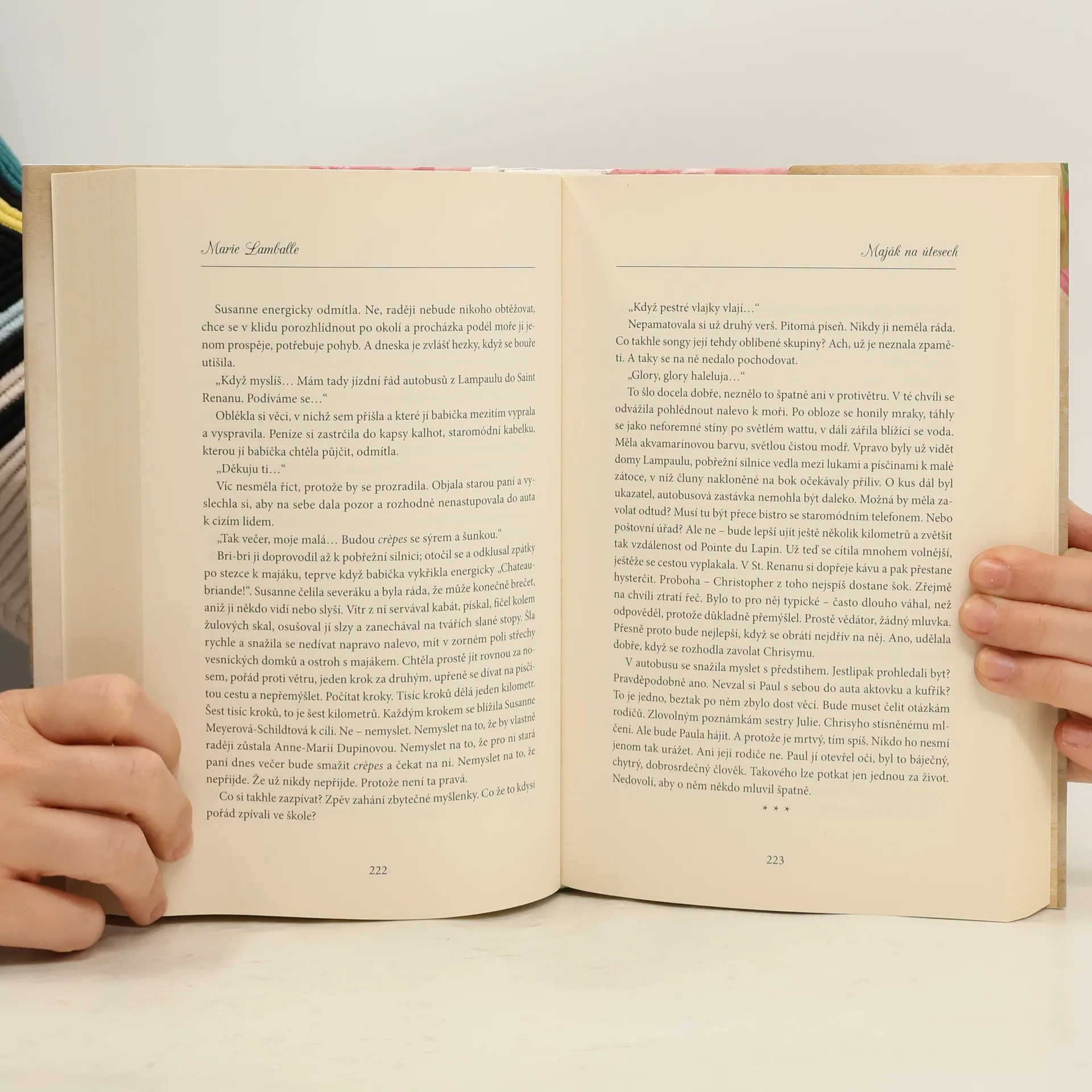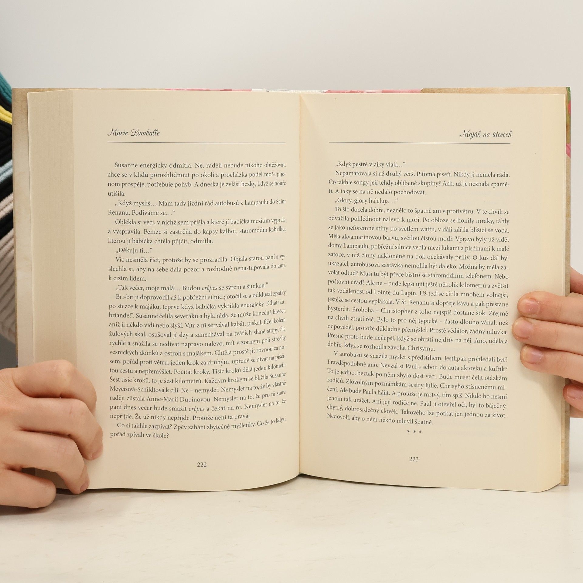 Po autonehodě Susanne dočasně ztratila paměť. Trápí se, neví, kdo je. V této situaci najde v kapse svého kabátu pozvání do Bretaně, adresované Anne-Marie LeBarsové. Susanne v domnění, že je Anne-Marie, odjíždí do Bretaně do malebného místa nad strmými útesy, kde stojí pouze několik rybářských domků a maják. V domě strážce majáku Susanne poznává milou a srdečnou starou paní, která je přesvědčená, že se konečně setkává se svou vnučkou Anne-Marie. Obě ženy si padnou do oka a brzy si Susanne oblíbí celá osada. Dívka se také začíná sbližovat s Alanem, který po tragické ztrátě preferuje samotu, ale její nově nalezené štěstí začínají ohrožovat vzpomínky na minulý život, které se Susanne postupně vracejí… Autorka napsala tři tzv. bretaňské romány, Hortenziovou zahradu, Hlubokou modř moře a právě Maják na útesech je poslední z těchto knih, které spojuje láska ke krásné provincii západní Francie.