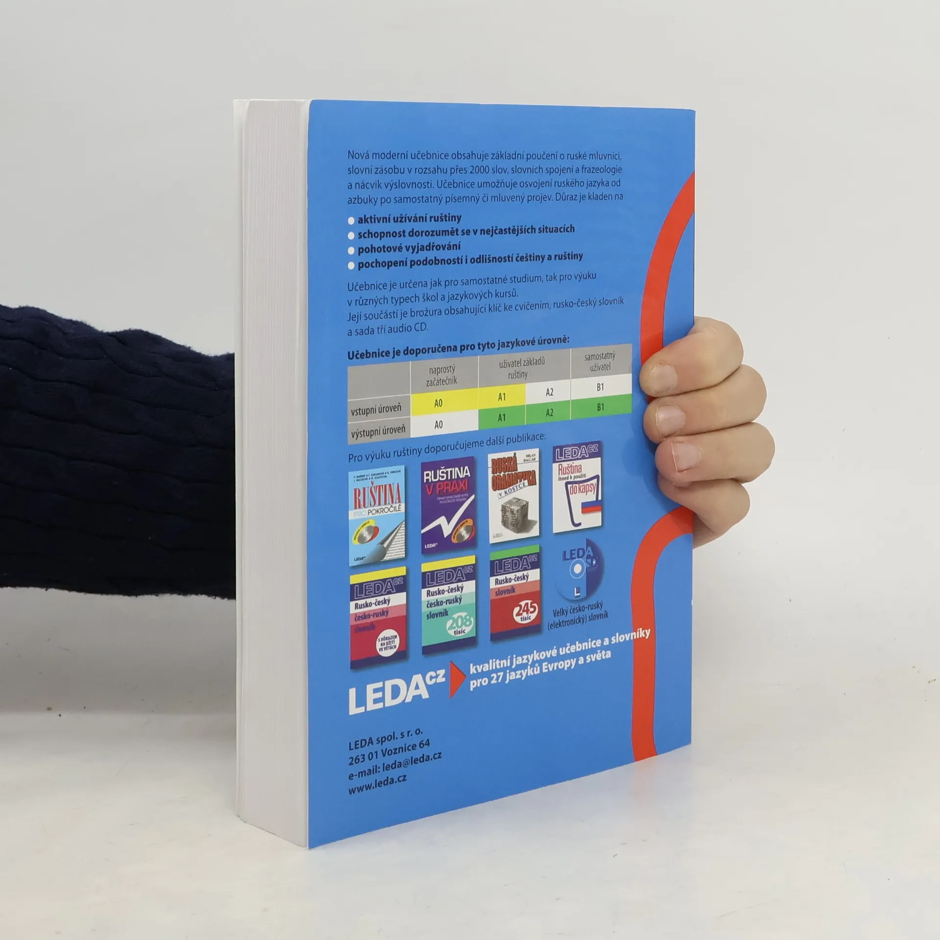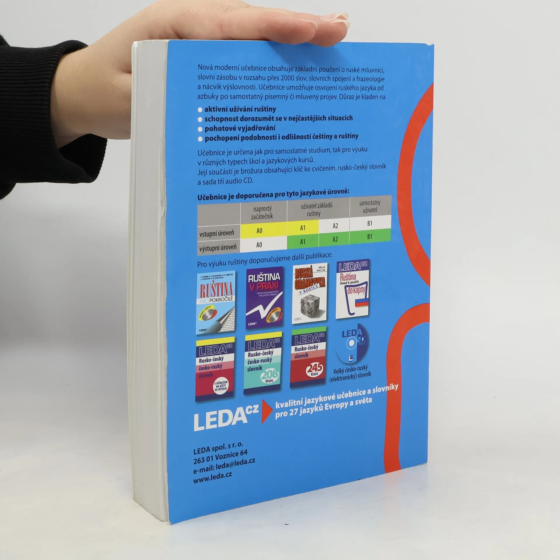Nová, moderní učebnice přináší základní znalosti ruské mluvnice, slovní zásoby (v rozsahu přes 2000 slov a slovních spojení), frazeologie a výslovnosti. Učebnice umožňuje osvojení ruského jazyka od azbuky po samostatný písemný či mluvený projev. Důraz je kladen na aktivní užívání ruštiny, pochopení podobností i odlišnosti češtiny a ruštiny, schopnost dorozumět se v nejčastějších situacích a pohotové vyjadřování. Výběr témat z nejrůznějších oblastí běžného života vede k porozumění mluveného i čteného jazykového projevu, k nácviku vlastní aktivní konverzace i písemného vyjadřování. Součástí učebnice je brožura obsahující klíč ke cvičením a rusko-český slovník, vložena je též sada tří audio CD s nahrávkami úvodních textů a většiny cvičení. Učebnice je určena jak pro samostatné studium, tak pro výuku v různých typech škol (základních, středních i vysokých) a v jazykových kursech. Cílem učebnice je zvládnutí ruštiny na středně pokročilé úrovni (stupeň B2 Evropského jazykového rámce).