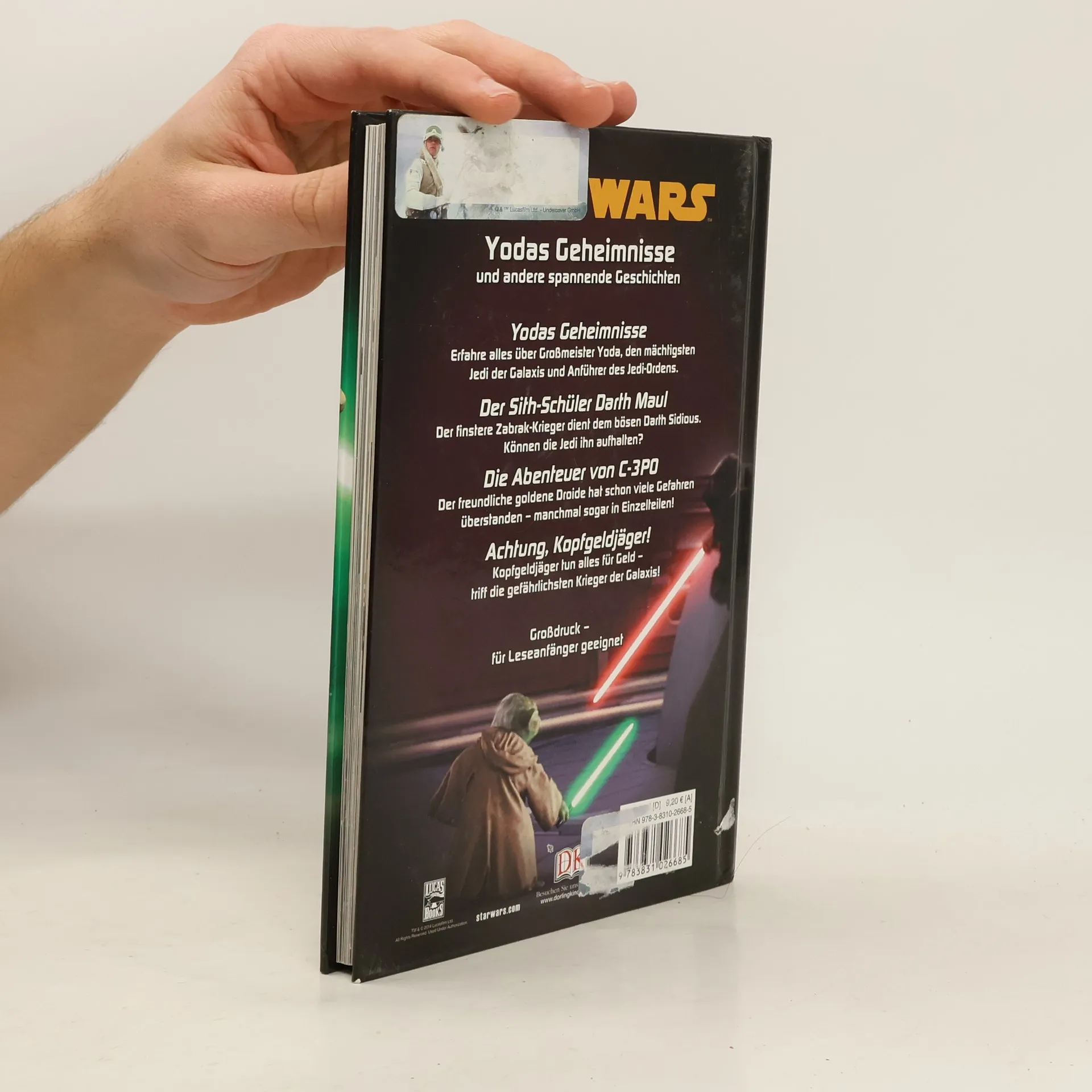 Lesen lernen mit dem Jedi-Meister! Dieses spannende Buch enthält vier galaktisch gute Star Wars™ Geschichten: Yodas Geheimnisse: Erfahre alles über Großmeister Yoda, den mächtigsten Jedi der Galaxis und Anführer des Jedi-Ordens. Darth Maul – Sith-Schüler: Der finstere Zabrak-Krieger dient dem bösen Darth Sidious. Können die Jedi ihn aufhalten? Die Abenteuer von C-3PO: Der freundliche goldene Droide hat schon viele Gefahren überstanden – manchmal sogar in Einzelteilen! Achtung, Kopfgeldjäger! Kopfgeldjäger unterwerfen sich niemandem und tun alles für Geld – triff die gefährlichsten Krieger der Galaxis! Die altersgerecht nacherzählten Geschichten sind sowohl zum Selber- als auch zum Vorlesen geeignet. Über 200 Original-Filmbilder, leicht verständliche Texte und eine große Schrift sind perfekt für Leseanfänger. Ein fantastischer Lesespaß! Dieses Buch ist bei Antolin. de verfügbar.