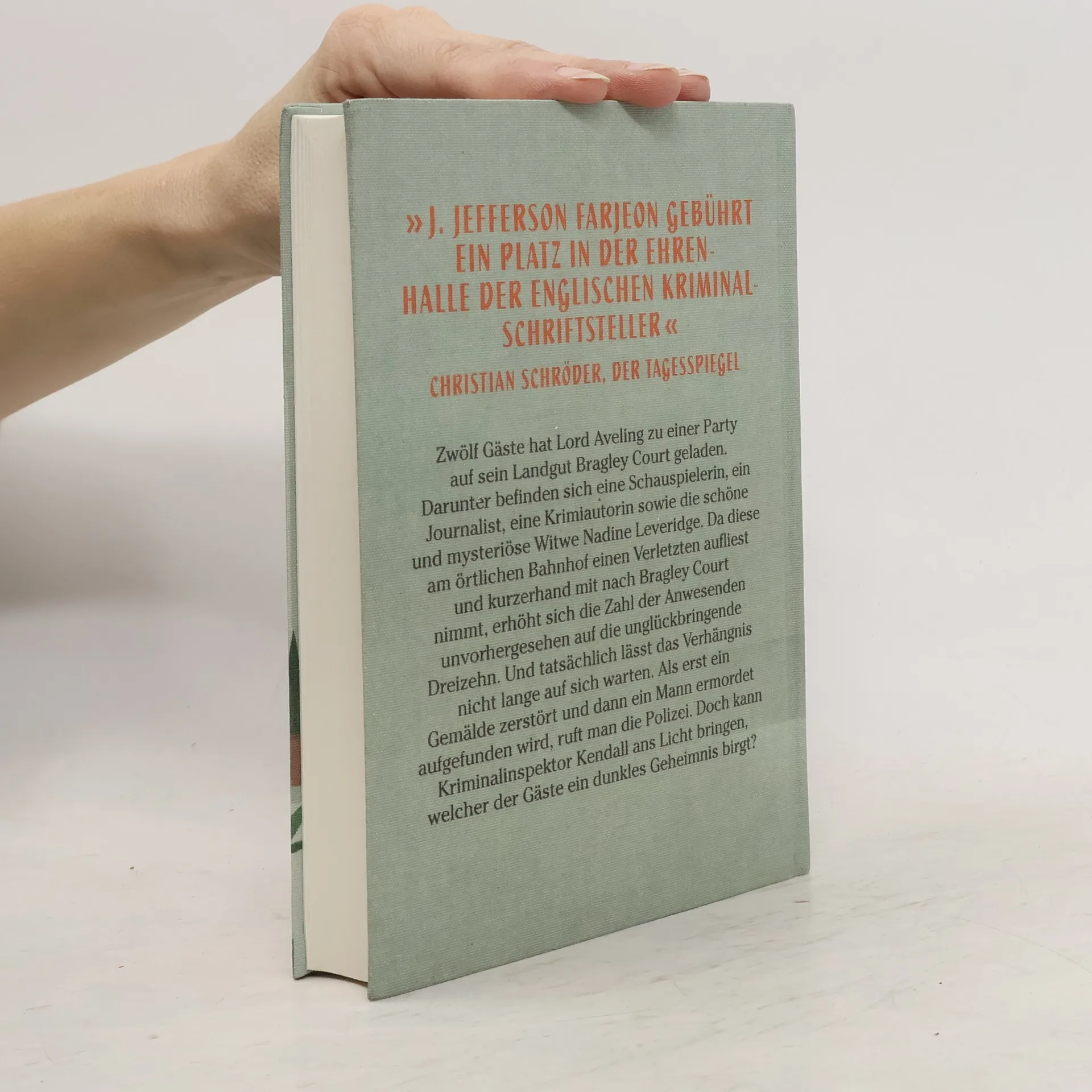 »Kein Beobachter, der sich in Unkenntnis der Situation befand, hätte vermutet, dass der Tod ganz in der Nähe lauerte und nur wenig entfernt vom Funkeln des Tafelsilbers und dem Stimmengewirr zwei Opfer stumm auf dem Boden des Ateliers lagen.« Zwölf Gäste hat Lord Aveling zu einer Party auf sein Landgut Bragley Court geladen. Darunter befinden sich eine Schauspielerin, ein Journalist, eine Krimiautorin sowie die schöne und mysteriöse Witwe Nadine Leveridge. Da diese am örtlichen Bahnhof einen Verletzten aufliest und kurzerhand mit nach Bragley Court nimmt, erhöht sich die Zahl der Anwesenden unvorhergesehen auf die unglückbringende Dreizehn. Und tatsächlich lässt das Verhängnis nicht lange auf sich warten. Als erst ein Gemälde zerstört und dann ein Mann ermordet aufgefunden wird, ruft man die Polizei. Doch kann Kriminalinspektor Kendall ans Licht bringen, welcher der Gäste ein dunkles Geheimnis birgt?