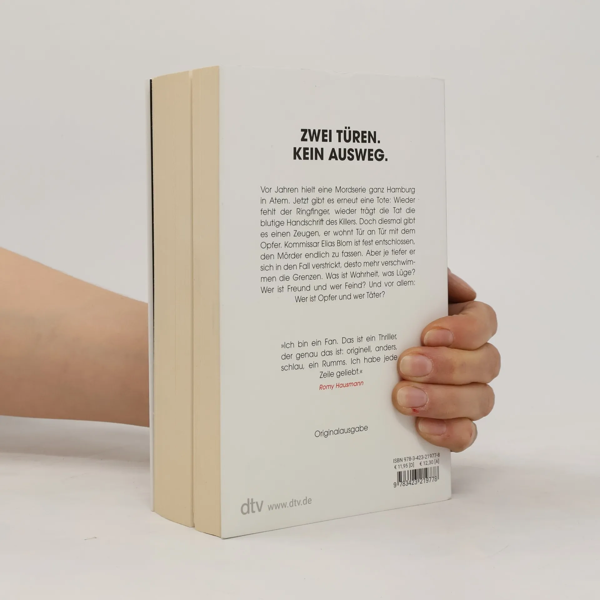 Zwei Türen. Kein Ausweg. Als Noah spätabends die Wäsche vom Dachboden holt, hat er plötzlich ein Messer an der Kehle. Der Angreifer will in seine Wohnung, zu seiner Frau. Noah bleibt keine andere Wahl, doch dann fällt ihm ein: Die Nachbarn gegenüber sind verreist. Und er hat den Zweitschlüssel … Stunden später findet ihn die Polizei bewusstlos neben der brutal ermordeten Nachbarin. Die Tat trägt die Handschrift eines berüchtigten Serienmörders, und Noah gilt als wichtiger Zeuge. Aber sagt er die ganze Wahrheit?