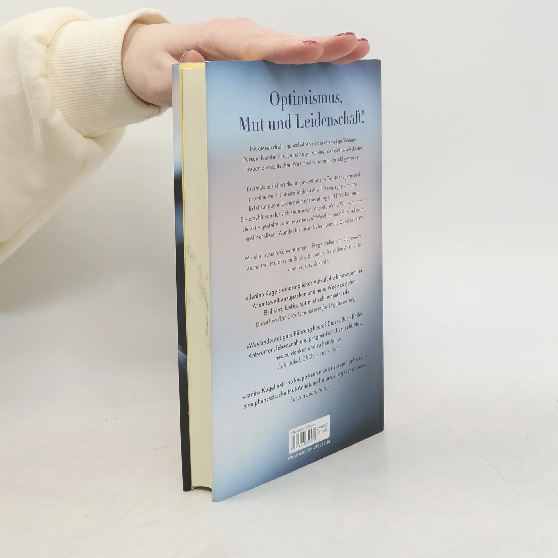 Janina Kugel war im Vorstand der Siemens AG zuständig für rund 380.000 Mitarbeiter. Mit frischen und innovativen Ideen schaffte sie es, die Unternehmenskultur des Großkonzerns Schritt für Schritt zu verändern – raus aus starren Strukturen, hin zu einem offenen und flexiblen Umgang, den Mensch immer im Mittelpunkt. Ihre Glaubenssätze: »Die Zeit allwissender und autokratischer Chefs ist vorbei.« – »Diverse Teams sind immer die besseren Teams.« - »Nur diejenigen, die den Wandel aktiv gestalten, werden erfolgreich sein.« – »In jedem Abschied liegt auch immer die Chance auf einen Neuanfang.« – »Jeder Arbeitnehmer ist ersetzbar. Jeder Job übrigens auch.« Jetzt erzählt sie von ihren persönlichen Erfahrungen, zeigt auf, was wir anpacken müssen, und ermutigt ihre LeserInnen, an sich selbst zu glauben und sich in der rasant verändernden Arbeitswelt durchzusetzen. Souverän, mutig, optimistisch – eine Revolution in Buchform!