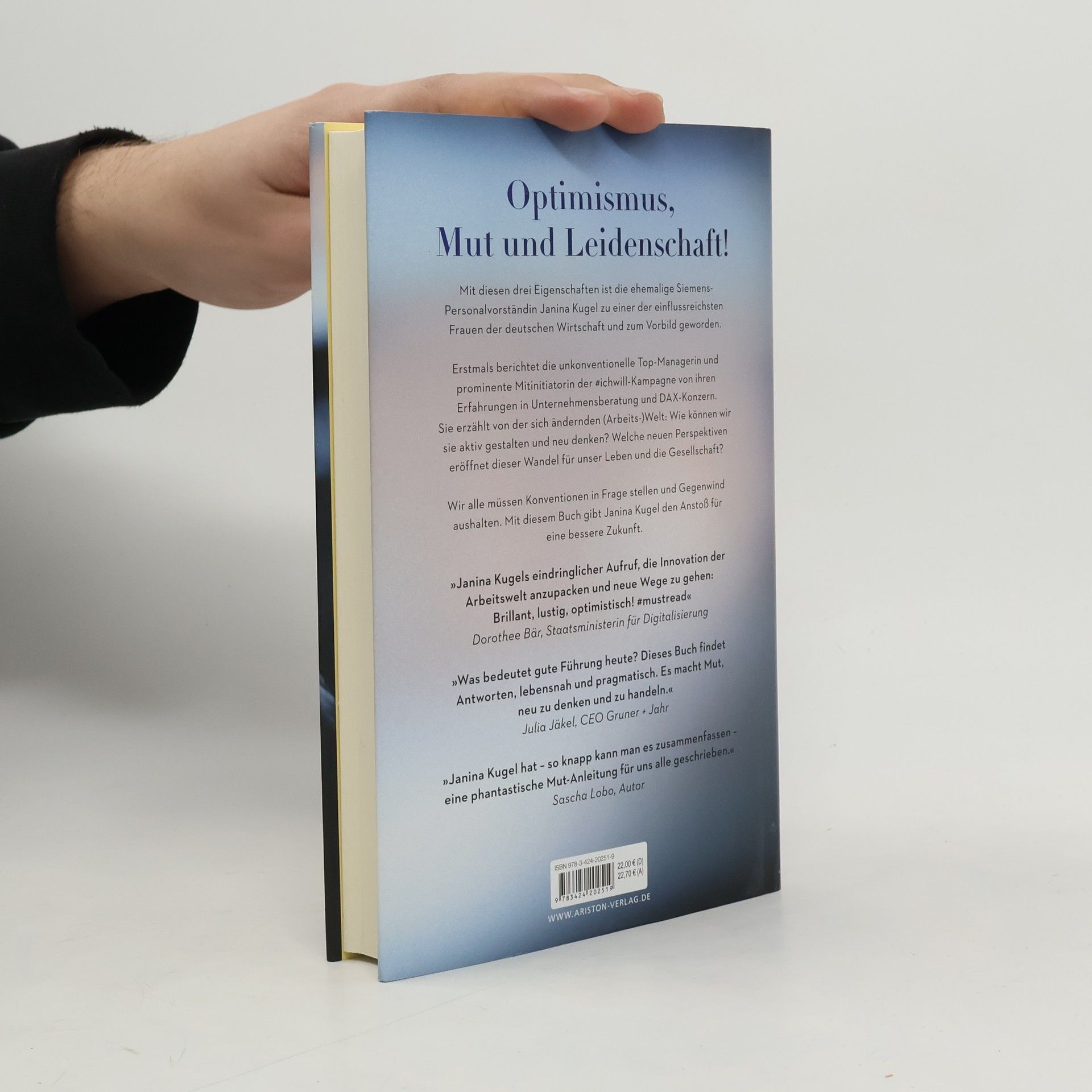 Janina Kugel war im Vorstand der Siemens AG zuständig für rund 380.000 Mitarbeiter. Mit frischen und innovativen Ideen schaffte sie es, die Unternehmenskultur des Großkonzerns Schritt für Schritt zu verändern – raus aus starren Strukturen, hin zu einem offenen und flexiblen Umgang, den Mensch immer im Mittelpunkt. Ihre Glaubenssätze: »Die Zeit allwissender und autokratischer Chefs ist vorbei.« – »Diverse Teams sind immer die besseren Teams.« - »Nur diejenigen, die den Wandel aktiv gestalten, werden erfolgreich sein.« – »In jedem Abschied liegt auch immer die Chance auf einen Neuanfang.« – »Jeder Arbeitnehmer ist ersetzbar. Jeder Job übrigens auch.« Jetzt erzählt sie von ihren persönlichen Erfahrungen, zeigt auf, was wir anpacken müssen, und ermutigt ihre LeserInnen, an sich selbst zu glauben und sich in der rasant verändernden Arbeitswelt durchzusetzen. Souverän, mutig, optimistisch – eine Revolution in Buchform!