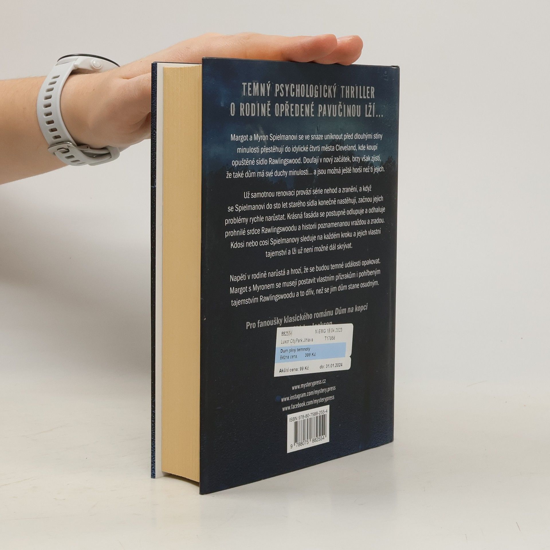TEMNÝ PSYCHOLOGICKÝ THRILLER O RODINĚ OPŘEDENÉ PAVUČINOU LŽÍ… Margot a Myron Spielmanovi se ve snaze uniknout před dlouhými stíny minulosti přestěhují do idylické čtvrti města Cleveland, kde koupí opuštěné sídlo Rawlingswood. Doufají v nový začátek, brzy však zjistí, že také dům má své duchy minulosti… a jsou možná ještě horší než ti jejich. Už samotnou renovaci provází série nehod a zranění, a když se Spielmanovi do sto let starého sídla konečně nastěhují, začnou jejich problémy rychle narůstat. Krásná fasáda se postupně odlupuje a odhaluje prohnilé srdce Rawlingswoodu a historii poznamenanou vraždou a zradou. Kdosi nebo cosi Spielmanovy sleduje na každém kroku a jejich vlastní tajemství a lži už není možné dál skrývat. Napětí v rodině narůstá a hrozí, že se budou temné události opakovat. Margot s Myronem se musejí postavit vlastním přízrakům i pohřbeným tajemstvím Rawlingswoodu a to dřív, než se jim dům stane osudným. ______ Pro fanoušky klasického románu Dům na kopci od Shirley Jackson.