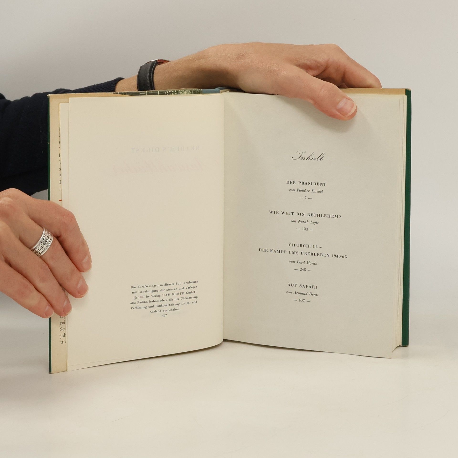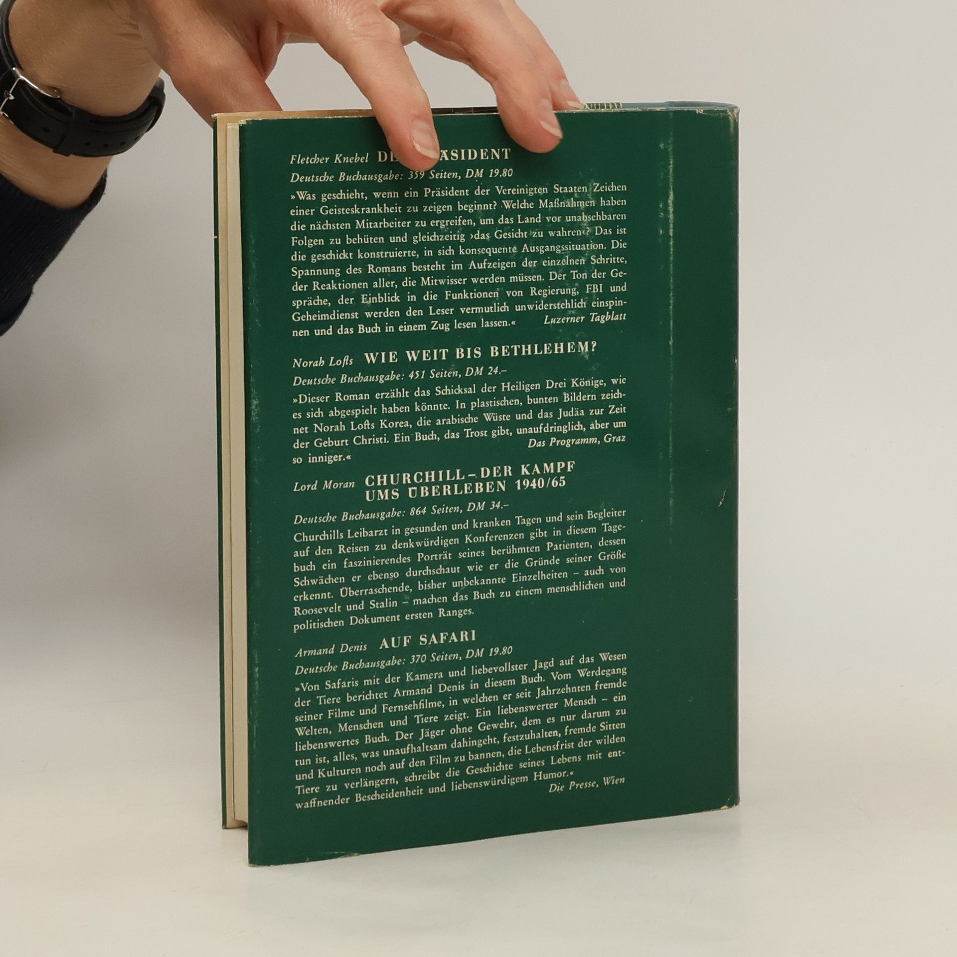 Reader's Digest Auswahlbücher. Der präsident. Wie Weit bis Bethlehem. Churchill der kampf ums überleben 1940/65. Auf Safari, Fletcher Knebel, Norah Lofts, Lord Moran, Armand Denis