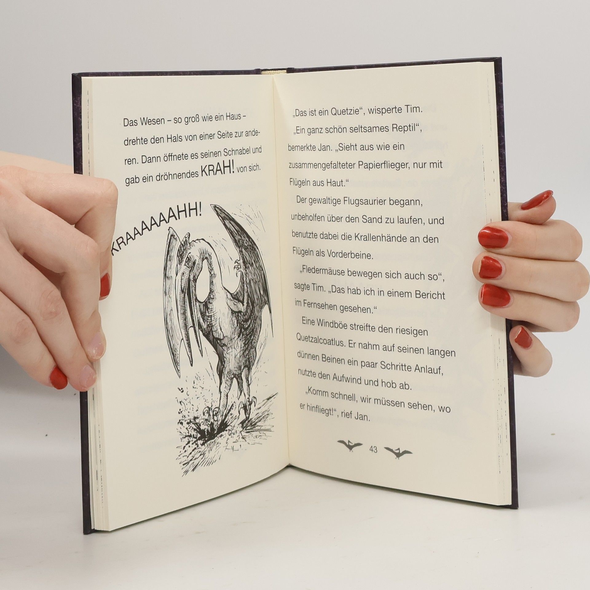 Wie ein Flugzeug schwebt der Quetzalcoatlus in der Luft. Auf einmal stürzt er im Sturzflug auf Jan, Tim und ihren Dino-Freund Wanna zu. Können sich die Freunde vor den Klauen des Flugsauriers retten?