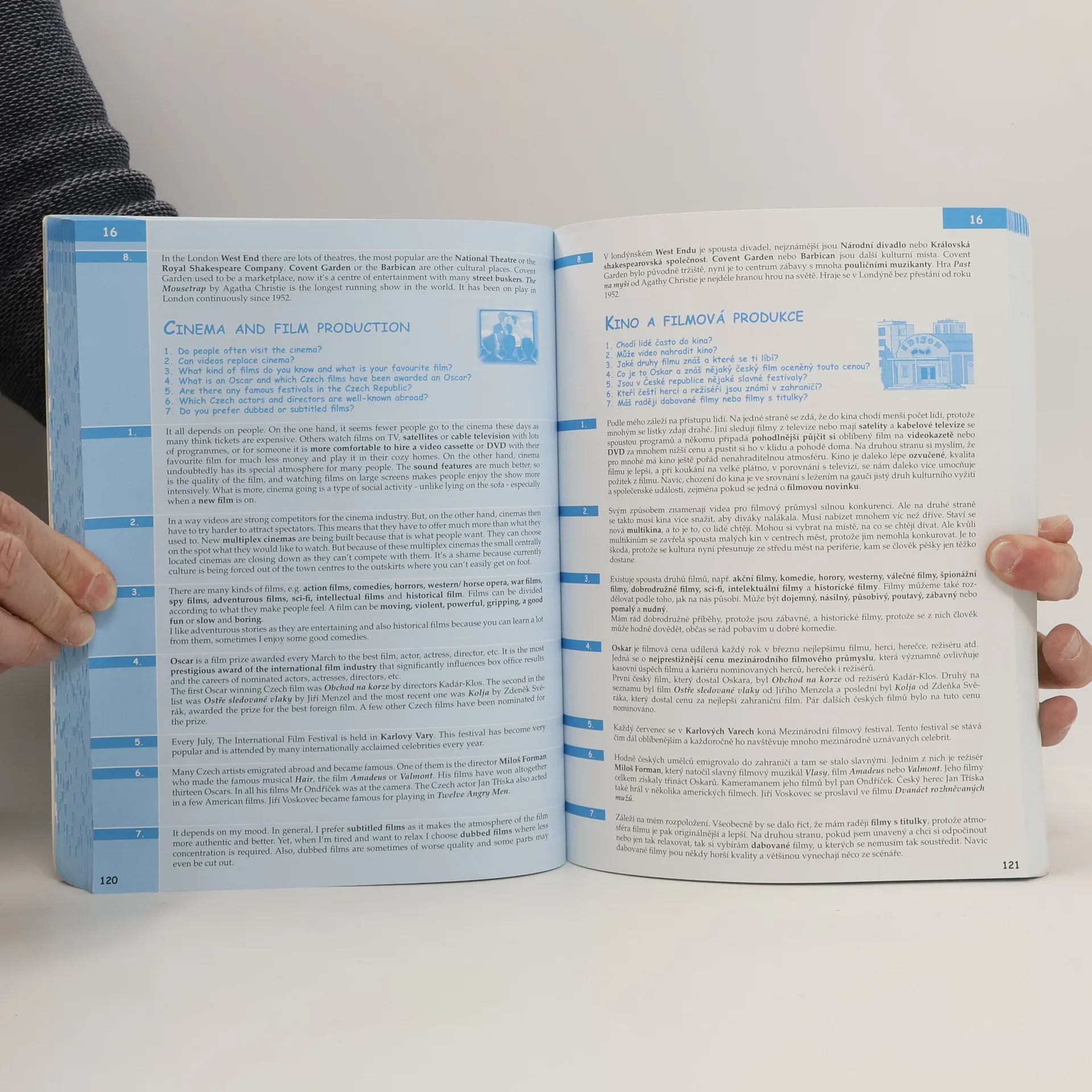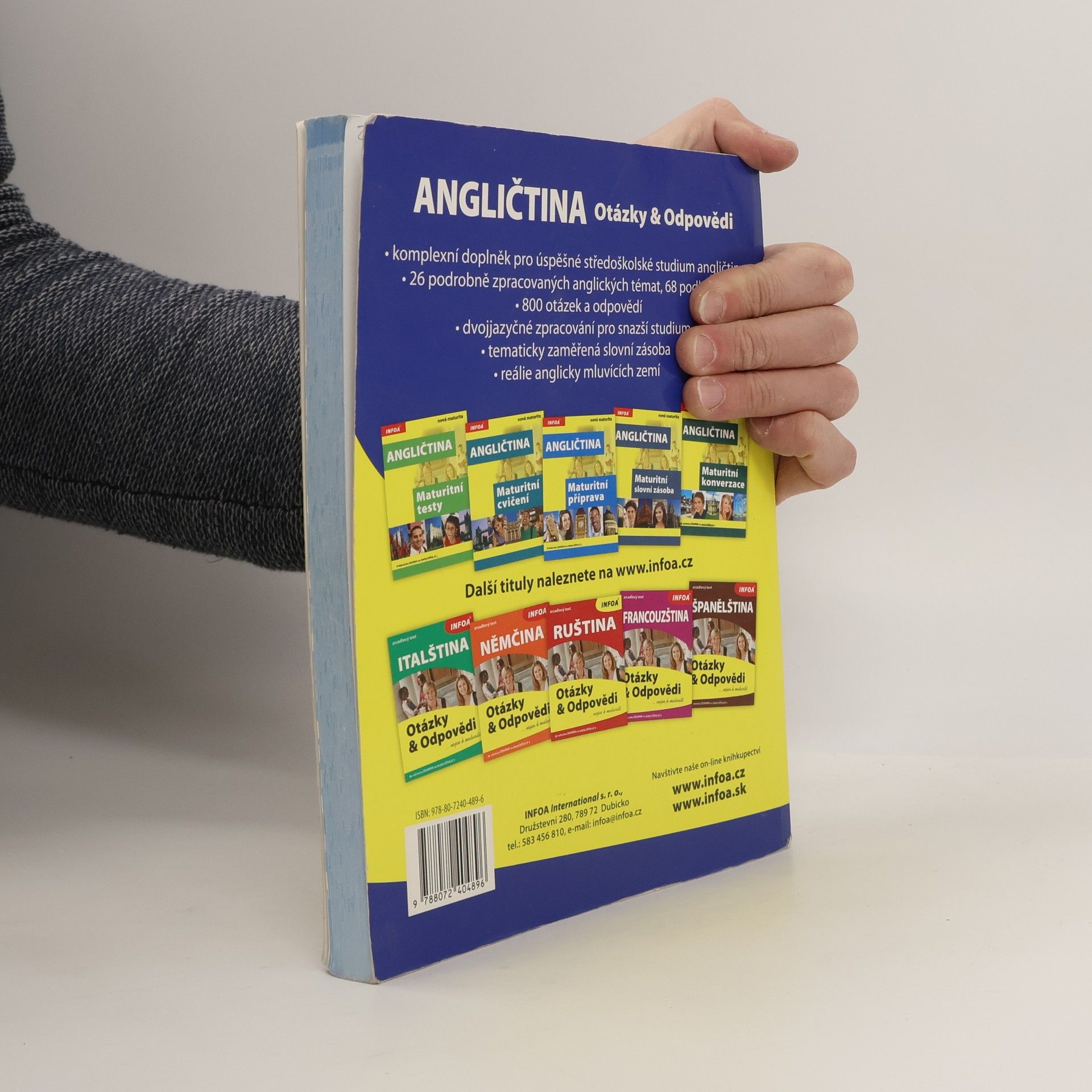 Komplexní doplněk pro úspěšné stredoškolské studium angličtiny, 28 podrobně zpracovaných témat, 68 podkapitol, 800 otázek a odpovědí, dvojjazyčné zpracování pro snazší studium, tematicky zaměřená slovní zásoba, reálie anglicky mluvících zemí, nahrávka anglických textů namluvená rodilými mluvčími V knize najdete podrobně zpracovaná témata: Rodinný život, Bydlení, Denní režim, Volný čas a zábava, Dnešní mládež, Škola a vzdělání, Volba povolání, Životopis, Pokrmy, Nakupování, Služby, Sport, Cestování, Zdraví a nemoci, Svátky, Móda a oblečení, Počasí a příroda, Umění a kultura, Média, Věda a technika, Evropská unie, Česká republika, Praha atd. Z anglických reálií témata: Spojené království Velké Británie a Severního Irska, Londýn, Spojené státy americké, Washington D. C. a jiná města v USA, Britské společenství, Anglická a americká literatura, Anglický jazyk