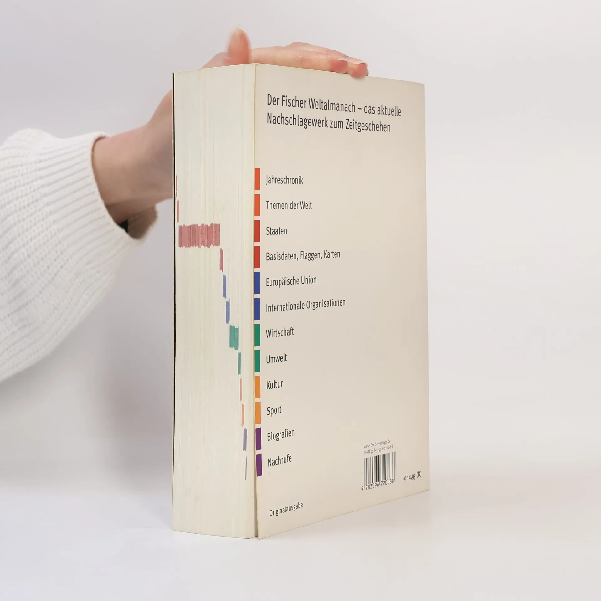 Der Fischer Weltalmanach ist im mittlerweile 48. Jahrgang das unentbehrliche Nachschlagewerk zum aktuellen Zeitgeschehen und ein „Klassiker der enzyklopädischen Kategorie“ (FAZ). Alljährlich überarbeitet und auf den neuesten Stand gebracht, liefert er zu allen 194 Staaten der Welt die wichtigsten Zahlen, Daten und Fakten aus Politik, Wirtschaft, Umwelt, Kultur und Sport. Zahlreiche farbige Karten, Tabellen, Info-Grafiken und Fotos veranschaulichen die neuesten Entwicklungen, Stichworte zu Themen mit globaler Bedeutung und ausführliche Hintergrundberichte fassen politische Entwicklungen zusammen und machen die Einordnung in größere Zusammenhänge leicht.