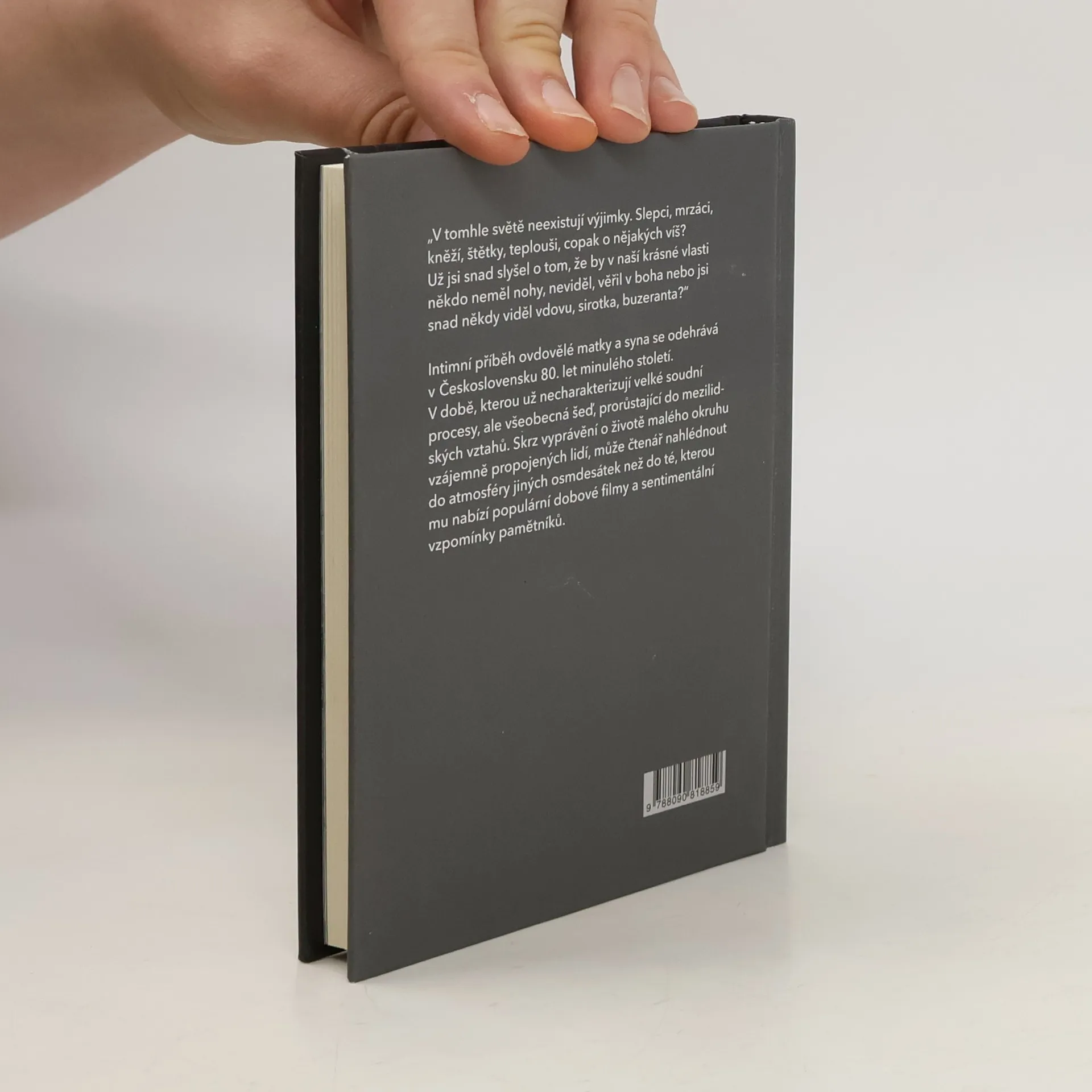 „V tomhle světě neexistují výjimky. Slepci, mrzáci, kněží, štětky, teplouši, copak o nějakých víš? Už jsi snad slyšel o tom, že by v naší krásné vlasti někdo neměl nohy, neviděl, věřil v boha nebo jsi snad někdy viděl vdovu, sirotka, buzeranta?“ Intimní příběh ovdovělé matky a syna se odehrává v Československu 80. let minulého století. V době, kterou už necharakterizují velké soudní procesy, ale všeobecná šeď, prorůstající do mezilidských vztahů. Skrz vyprávění o životě malého okruhu vzájemně propojených lidí, může čtenář nahlédnout do atmosféry jiných osmdesátek než do té, kterou mu nabízí populární dobové filmy a sentimentální vzpomínky pamětníků.