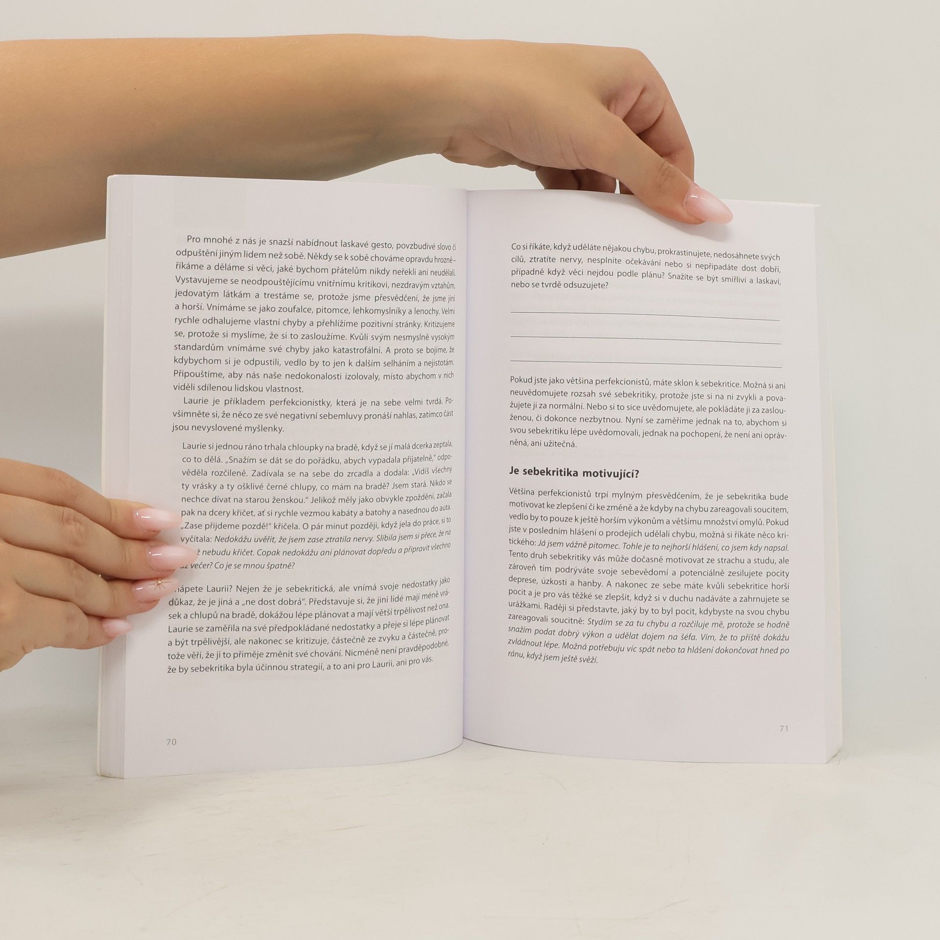 Kniha s podtitulem "Zvládejte svůj perfekcionismus" nabízí řadu strategií, které mohou pomoci vystoupit z nekonečného běhu za dokonalostí. Obsahuje řadu příkladů z autorčiny psychoterapeutické praxe, podnětů k zamyšlení, škál zjišťujících, jak jsme na tom s perfekcionismem právě my, a hlavně inspirace a podpory pro změnu v životě. Autorka zařadila také cvičení založená na konceptu mindfulness. Vydavatel knihu doporučuje lidem potýkajícím se s vlastním perfekcionismem i pomáhajícím profesionálům.