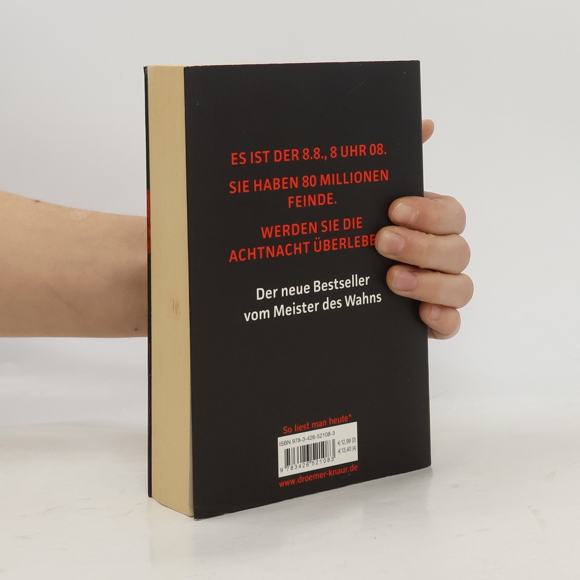 Ein furioser Thriller von Sebastian Fitzek, basierend auf einer großartigen Wahn-Idee: Was wäre, wenn du einen Menschen deiner Wahl straflos töten darfst? Es ist der 8. 8., acht Uhr acht. Du hast 80 Millionen Feinde. Wirst du die AchtNacht überleben? Stell dir vor, es gibt eine Todeslotterie. Du kannst den Namen eines verhassten Menschen in einen Lostopf werfen. In der „AchtNacht“, am 8. 8. jedes Jahres, wird aus allen Vorschlägen ein Name gezogen. Der Auserwählte ist eine AchtNacht lang geächtet, vogelfrei. Jeder in Deutschland darf ihn straffrei töten - und wird mit einem Kopfgeld von zehn Millionen Euro belohnt. Das ist kein Gedankenspiel. Sondern bitterer Ernst. Es ist ein massen-psychologisches Experiment, das aus dem Ruder lief. Und dein Name wurde gezogen! Ein rasanter Action-Thriller und Bestseller von Sebastian Fitzek, dem „Meister des Wahns“ – exklusiv im Taschenbuch.