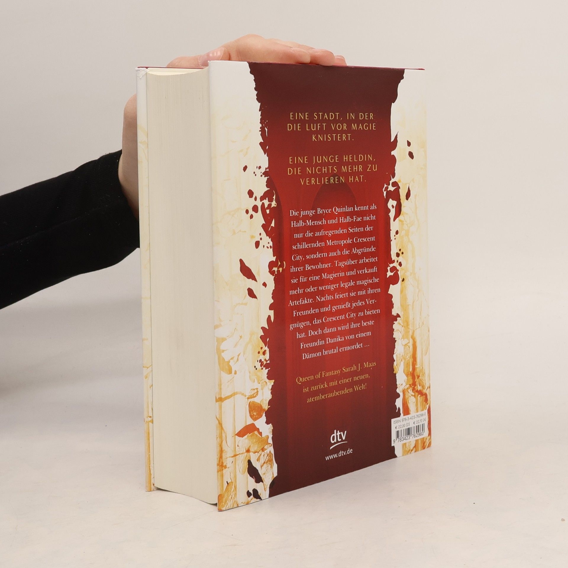 Der Auftakt zur neuen Reihe von Bestsellerautorin Sarah J. Maas! Magie, Musik – und tödliche Gefahren: Die junge Bryce Quinlan, Halb-Fae und Halb-Mensch, genießt jedes Vergnügen, das Crescent Citys Nächte zu bieten haben. Doch dann wird ihre beste Freundin Danika von einem Dämon brutal ermordet – und für Bryce bricht die ganze Welt zusammen. Als der Dämon zwei Jahre später erneut zuschlägt, wird Bryce gegen ihren Willen in die Ermittlungen hineingezogen und muss mit Hunt Athalar zusammenarbeiten. Einem Engel, der als gewissenloser Auftragsmörder berüchtigt ist, – und mit dem sich Bryce auf ein Spiel mit dem Feuer einlässt. Während die beiden der Spur des Dämons tief in die Unterwelt der Stadt folgen, entdecken sie eine bösartige Macht, die ganz Crescent City in Schutt und Asche legen könnte …   Kennen Sie bereits die weiteren Serien von Sarah J. Maas bei dtv? »Das Reich der sieben Höfe« »Throne of Glass«