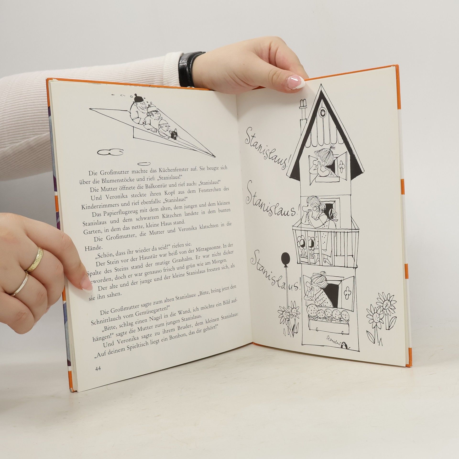 Der alte, der junge und der kleine Stanislaus unternehmen in einem Papierschiff eine abenteuerliche Reise. Sie kommen an einer alten Burg, dann an einem gefährlichen Mühlrad vorbei und fahren bis zu einem großen Strom, auf dem Dampfer und Frachtschiffe schwimmen. Am Ende erreichen sie ein friedliches Städtchen und fischen dort ein Kätzchen aus dem Wasser, das keine Mäuse frisst. Zufrieden kehren die drei mit ihrer Katze wieder nach Hause zurück.