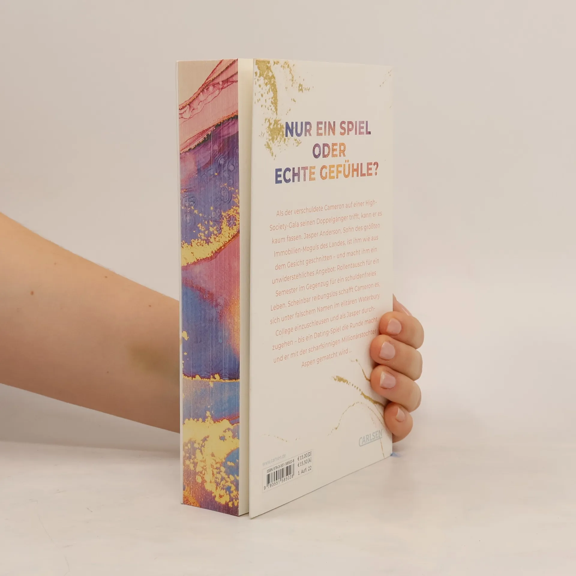 Als der verschuldete Cameron auf einer High-Society-Gala seinen Doppelgänger trifft, kann er es kaum fassen. Jasper Anderson, Sohn des größten Immobilien-Moguls des Landes, ist ihm wie aus dem Gesicht geschnitten – und macht ihm ein unwiderstehliches Angebot: Rollentausch für ein Semester im Gegenzug für ein schuldenfreies Leben. Scheinbar reibungslos schafft Cameron es, sich unter falschem Namen im elitären Waterbury College einzuschleusen und als Jasper durchzugehen – bis ein Dating-Spiel die Runde macht und er mit der scharfsinnigen Millionärstochter Aspen gematcht wird …