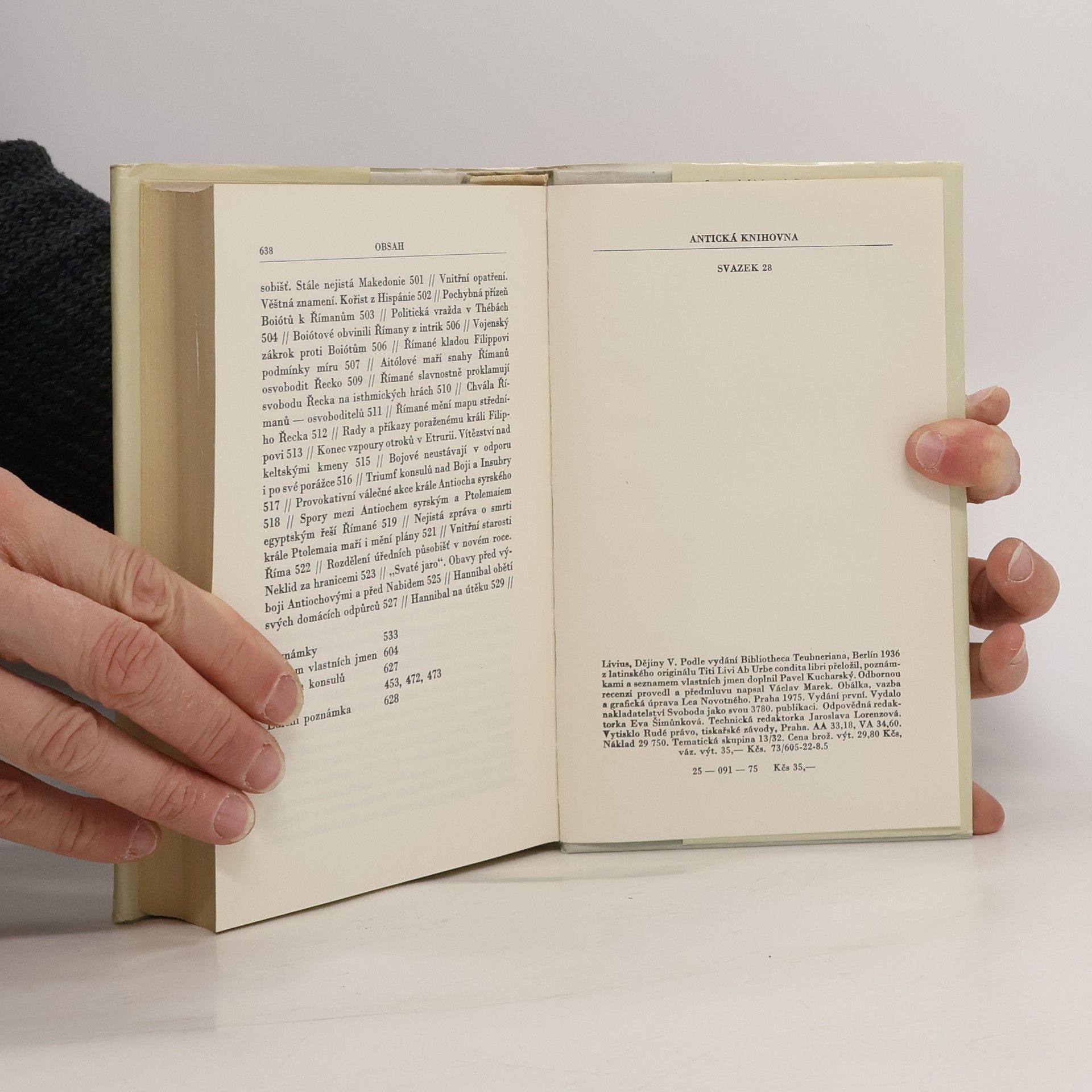 5. svazek Liviových Dějin líčí průběh 2. války punské, boje Římanů s vojevůdci Hamilkarem, Hasdrubalem a Hanibalem, slavné bitvy nad Metaurem, u Zamy a také srážky s makedonským králem Filippem.