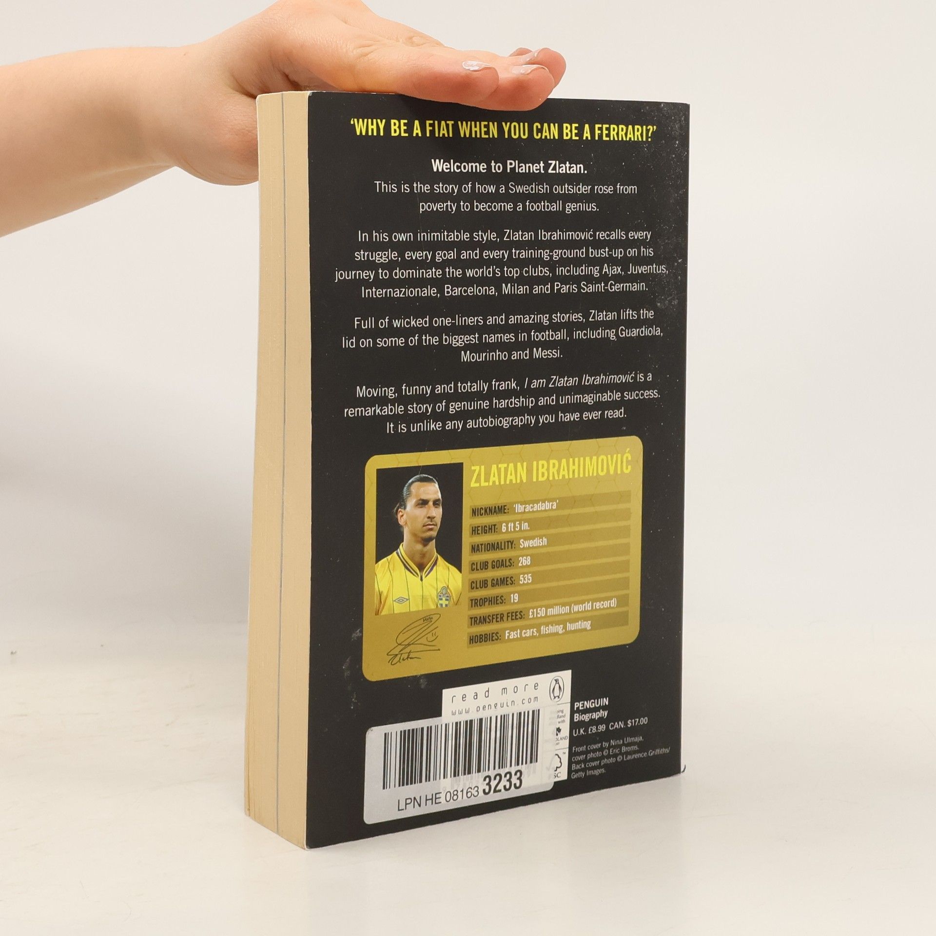 I AM ZLATAN - the explosive, critically-acclaimed memoir of Manchester United star Zlatan Ibrahimovic, one of the world's most gifted and controversial footballers 'Why be a Fiat when you can be a Ferrari?' Welcome to planet Zlatan. This is the story of how a Swedish immigrant rose from poverty to become a football genius. In his own inimitable style, Zlatan recalls every struggle, every goal, and every training ground bust-up on his journey to dominate the world's top clubs, including Barcelona, PSG and now Manchester United. Full of wicked one-liners and amazing stories, Zlatan lifts the lid on some of the biggest names in football, including Guardiola, Messi and his new manager, Jose Mourinho. Moving, funny and totally frank, I am Zlatan is unlike any autobiography you have ever read. 'Wonderful - nothing less than a revelation. Ibrahimovic is the definitive modern sporting icon' - Matthew Syed 'The best sportsman's memoir since Andre Agassi... not just a bad boy's romp but the rise of a boy from the ghetto to the top of his profession and captain of his country. He is candid, funny and yes, wonderfully nuts' - The Times 'There's never a dull moment on Planet Zlatan. This is a snarling, fizzing, unrepentant firecracker of a book; if footballers' memoirs bore you, make an exception for this one' - Independent