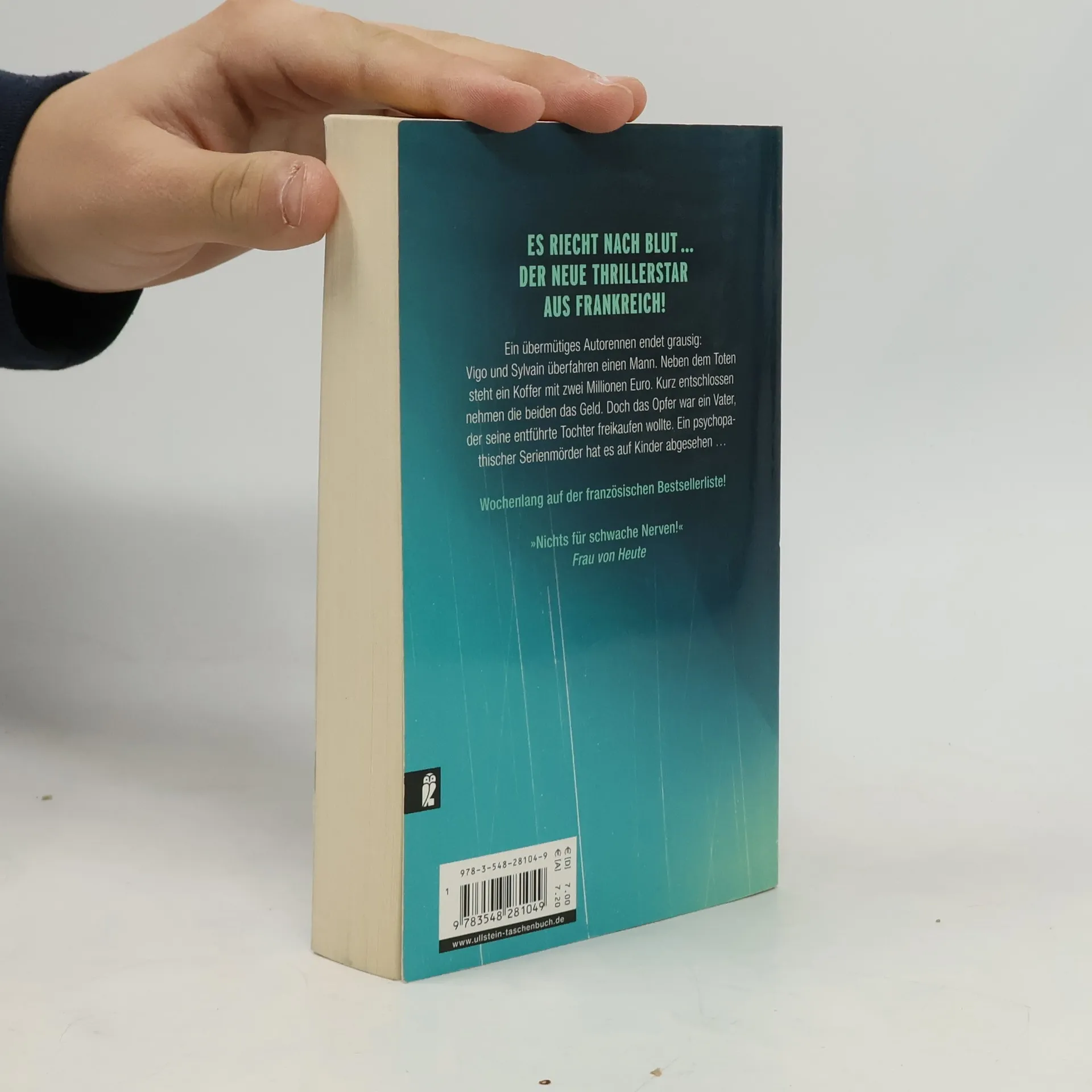 Ein Autorennen endet tödlich, als Vigo und Sylvain einen Mann überfahren und dessen Leiche im Moor versenken. Sie finden einen Koffer mit zwei Millionen Euro, doch das Opfer war ein Vater auf der Suche nach seiner entführten Tochter. Ein psychopathischer Serienmörder bedroht Kinder. Ein spannender Thriller.