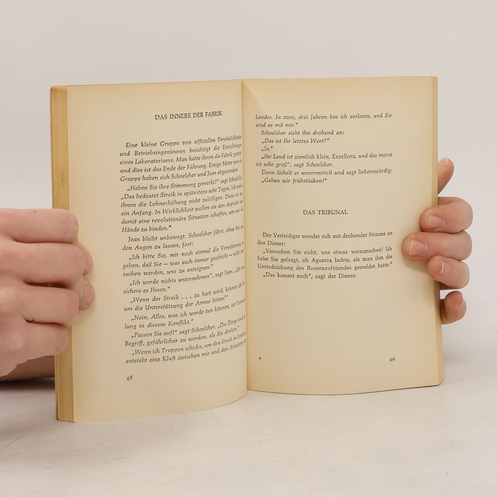 Drehbuch "Im Räderwerk" ist das Szenario für einen Film. Es handelt sich um den Prozeß gegen einen gestürzten revolutionären Diktator in einem unterentwickelten Land. Die neuen Machthaber, seine ehemaligen Mitkämpfer, klagen ihn an, die Revolution verraten zu haben, weil er die Erdölquellen, den einzigen Reichtum des Landes, der sich im Besitz eines reichen Nachbarstaates befindet, nicht verstaatlicht, dafür aber mit Terror eine Industrialisierung der Landwirtschaft durchgesetzt hat. Doch im Lauf des Prozesses wird deutlich, daß auch die neuen Machthaber keine andere Wahl haben, da eine Verstaatlichung der Erdölquellen Krieg bedeutet.