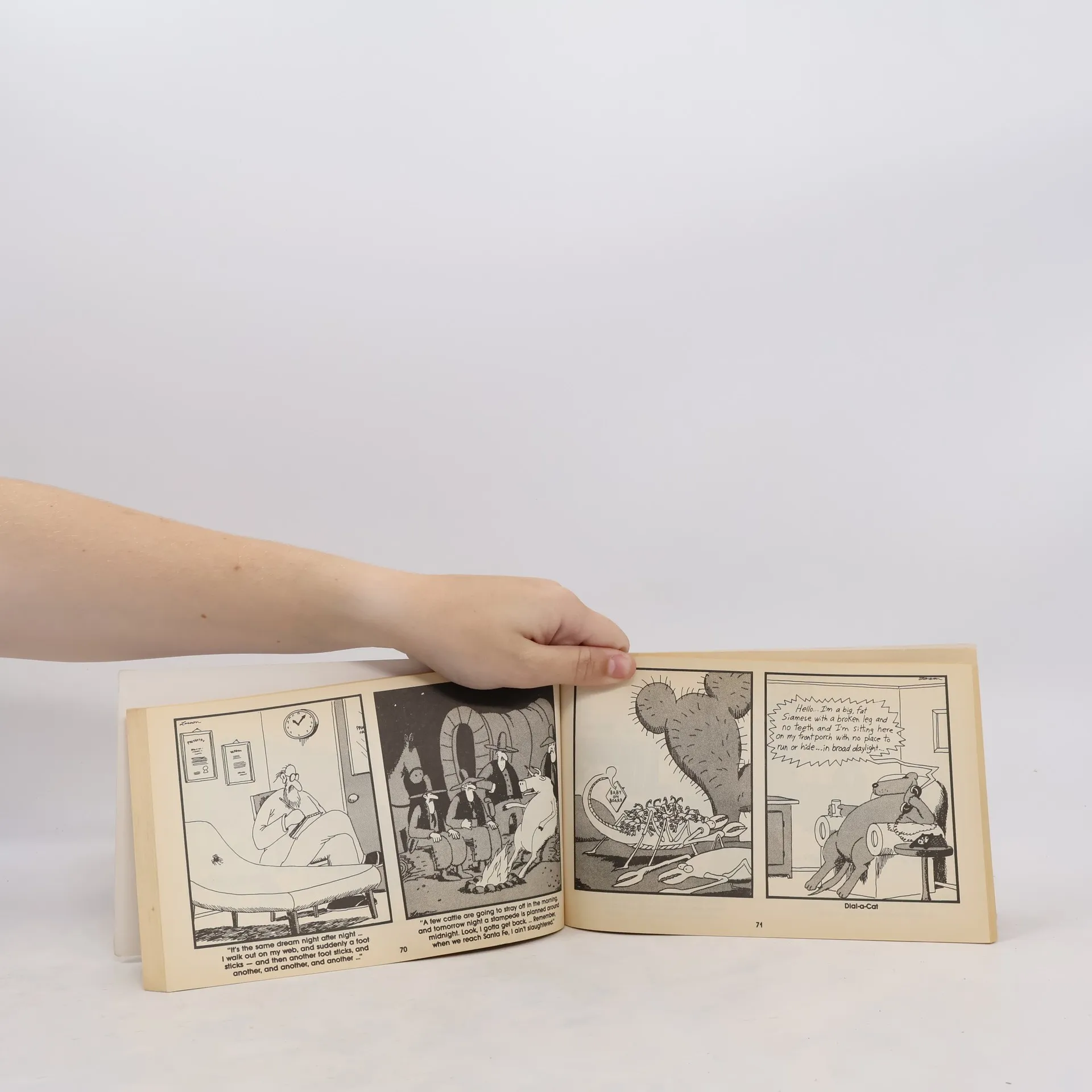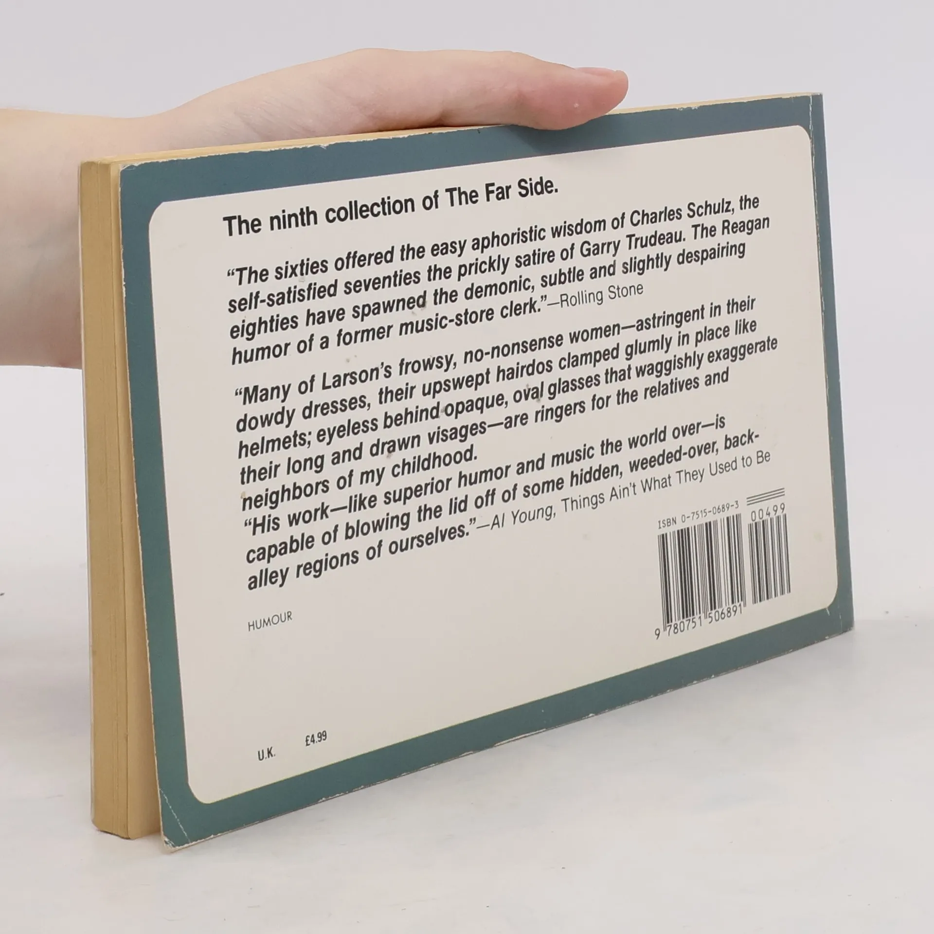 "The sixties offered the easy aphoristic wisdom of Charles Schulz, the self-satisfied seventies the pricjly satire of Garry Trudeau. The Reagan eighties have spawned the demonic, subtle and slightly despairing humor of a former music-store clerk." -Rolling Stone "Many of Larson's frowsy, no-nonsense women - astringent in their dowdy dresses, their upswept hairdos clamped glumly in place like helmets; eyeless behind opaque oval glasses that waggishly exaggerate their long and drawn visages - are ringers for the relatives and neighbors of my childhood."His work - like superior humor and music the world over - is capable of blowing the lid oof of some hidden, weeded-over, back-alley regions of ourselves." -Al Young, Things Ain't What They Used to Be