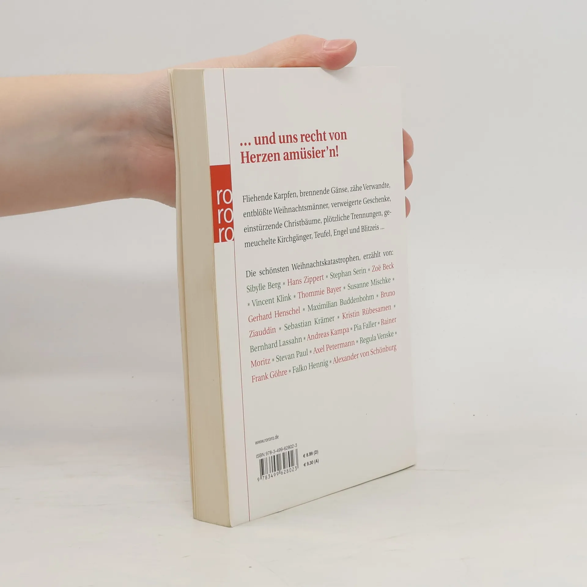 Weihnachten – Fest der Liebe, Zeit der Besinnung und gemütlicher Stunden im Kreise der Famillie. Manchmal. Viel häufiger entwickeln die Weihnachtstage eine ganz eigene Dynamik, so dass die Beteiligten am Ende das Gegenteil von froh und munter sind: die Gans verkohlt, das Geschenk ein Flop, die Gattin fort. Ob frisch geschieden, pleite oder von der Schuppenflechte geplagt – hier erzählen Autoren von ihren besten Weihnachtskatastrophen. Ein Trost für jeden, der beim Anblick der Schokoladenweihnachtsmänner im Supermarktregal die Krise kriegt.