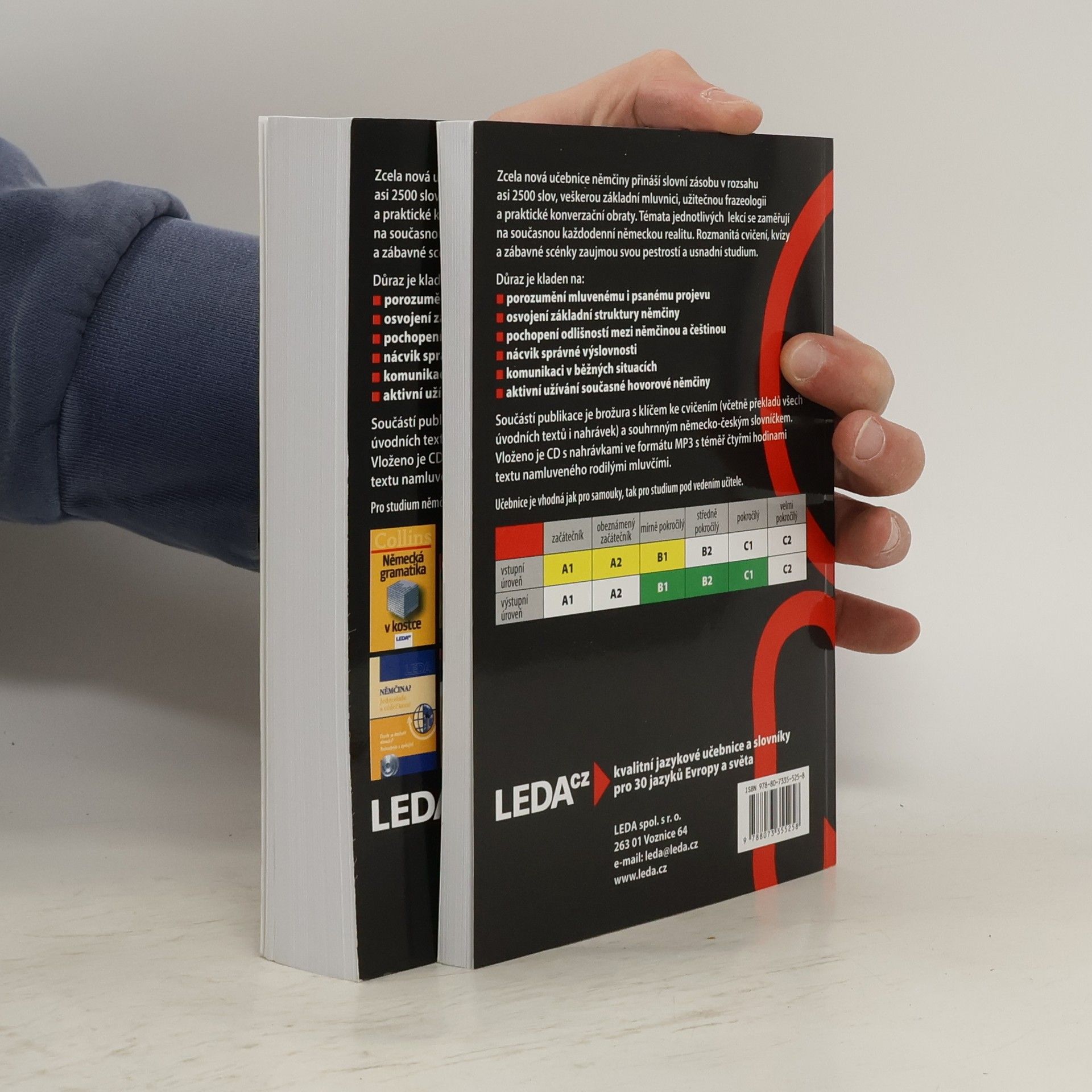Němčina nejen pro samouky je komplexní učební materiál určený pro studenty němčiny na různých úrovních. Sada obsahuje učebnici, klíč k cvičením a slovník, což poskytuje uživatelům všechny potřebné nástroje pro efektivní učení. Učebnice se zaměřuje na praktické aspekty jazyka, včetně gramatiky, slovní zásoby a konverzačních dovedností, a to prostřednictvím různých cvičení a příkladů ze skutečného života. Klíč k cvičením umožňuje studentům ověřit si své odpovědi a sledovat svůj pokrok. Slovník obsahuje důležité termíny a fráze, které podporují porozumění a aktivní používání jazyka. Tato sada je vhodná pro samouky, ale i pro učitele, kteří hledají kvalitní materiály pro výuku němčiny. Uživatelé mohou očekávat strukturovaný přístup k učení, který usnadňuje osvojování jazykových dovedností a zvyšuje sebedůvěru při komunikaci v němčině.