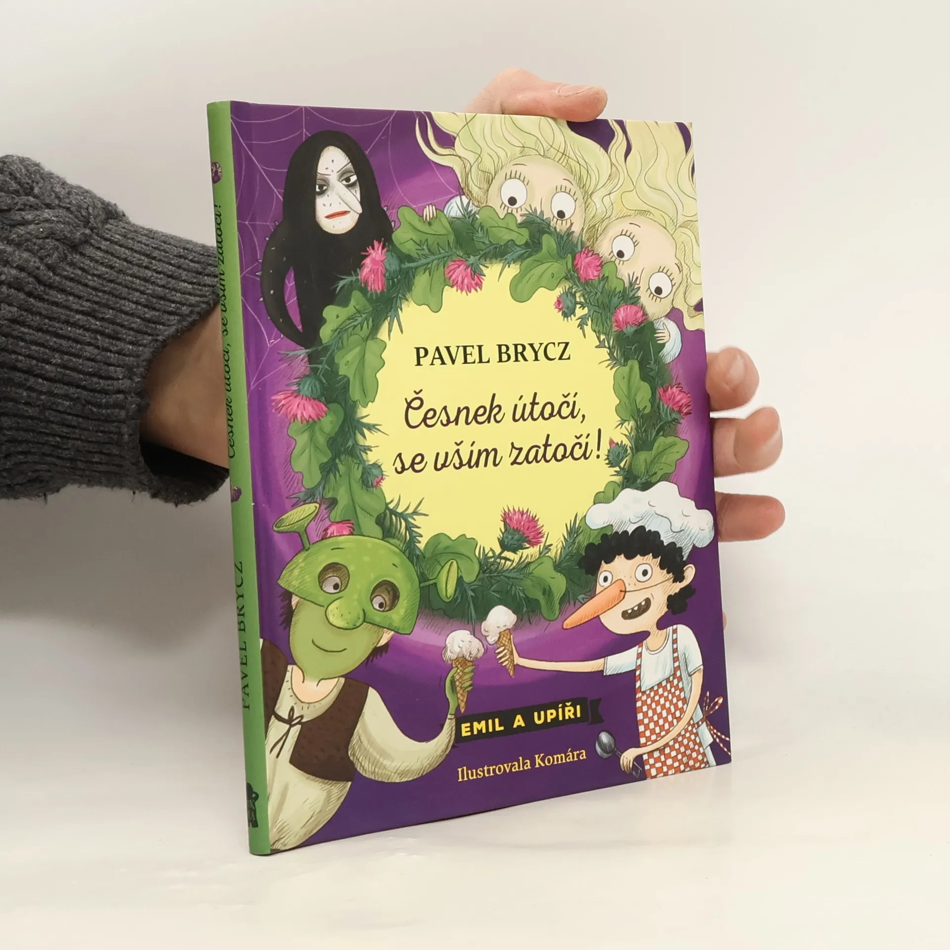 Malé upírky Ela a Hela začaly chodit do stejné školy jako Emil. Všichni žáci i učitelé jsou v ohrožení života, ale Emil ví své. Boj na život a na smrt začíná. Naštěstí má Emil za sebou partu neohrožených česnektariánů a společně se rozhodnou krizovou situaci ve škole vyřešit na vlastní pěst. Další příběh z úspěšné série o Emilovi a upírech je tady! Kniha je určena pro děti od 6 let.