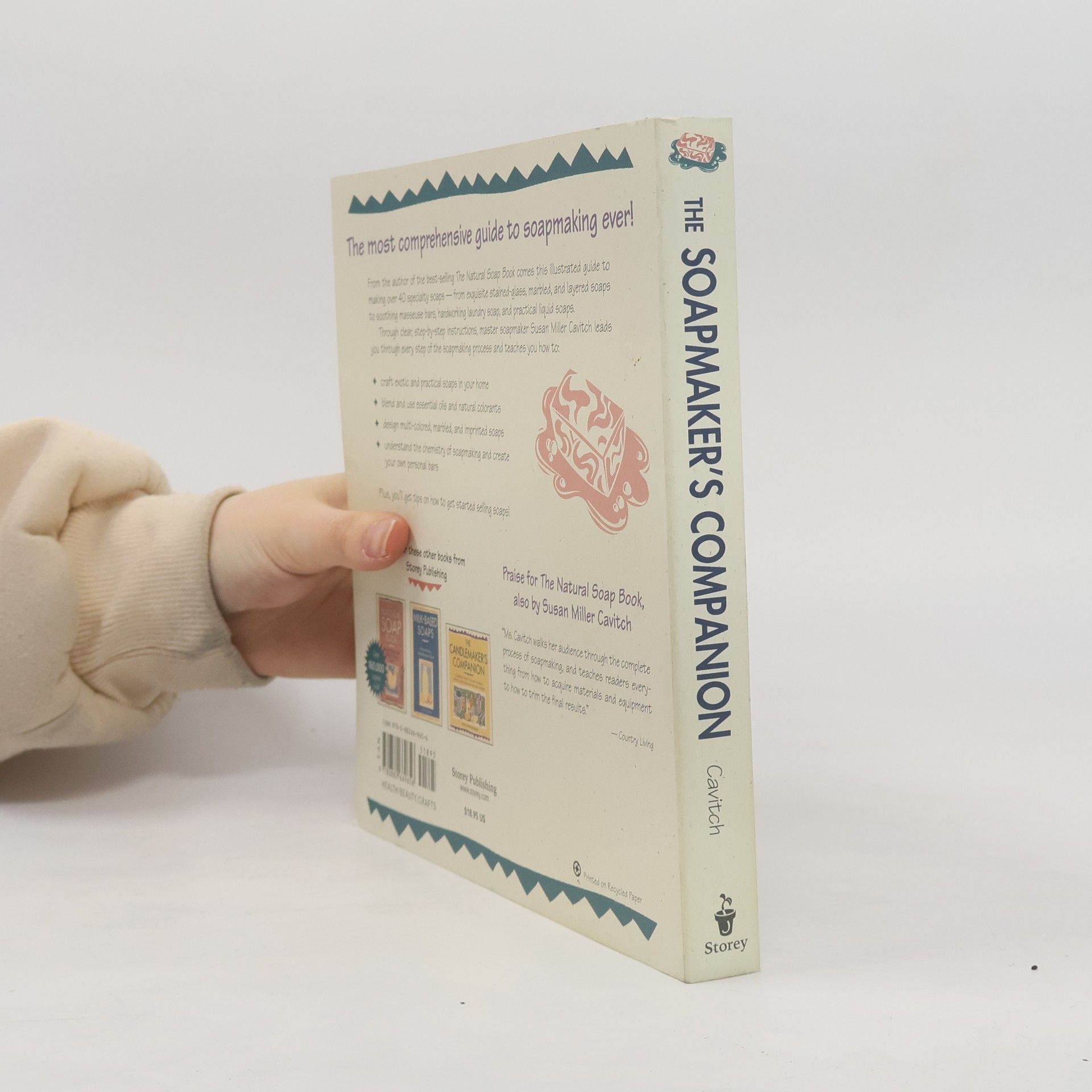 In this comprehensive guide, Susan Miller Cavitch covers everything you need to know to make your own soaps. Learn the basic techniques for crafting oil-, cream-, and vegetable-based soaps, and then start experimenting with your own personalized scents and effects. Cavitch provides tips for making more than 40 different specialty soaps, showing you how to design colorful marbled bars and expertly blend ingredients to create custom fragrances. You’ll soon be making luxurious soaps at a fraction of the cost of boutique products.Important NoticeEarly printings of this book contain a recipe variation in a sidebar note on page 36. As a result of further testing, author Susan Miller Cavitch and Storey Publishing strongly recommend that you do not try this variation. Adding honey when you are combining the sodium hydroxide and water may result in a stronger reaction with more intense heat. The mixture may bubble up quickly and come out of the pot, posing a potential hazard.