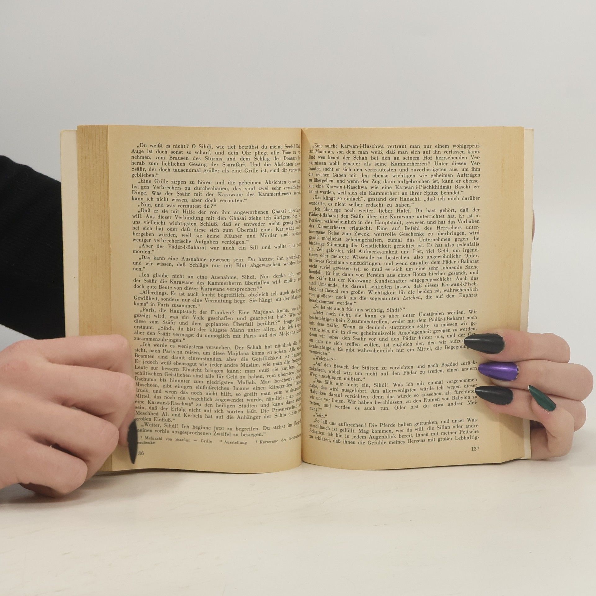 Ereignisse aus dem vorigen Band zeigen ihre tiefere Bedeutung; in einem langen Nachtgespräch halten der 'Ustad' (der Meister der Dschamikun) und Kara Ben Nemsi innere Einkehr. Es ist Karl Mays eigene Persönlichkeit, die in diesem Spätwerk im ernsten Ringen mit sich selbst liegt.