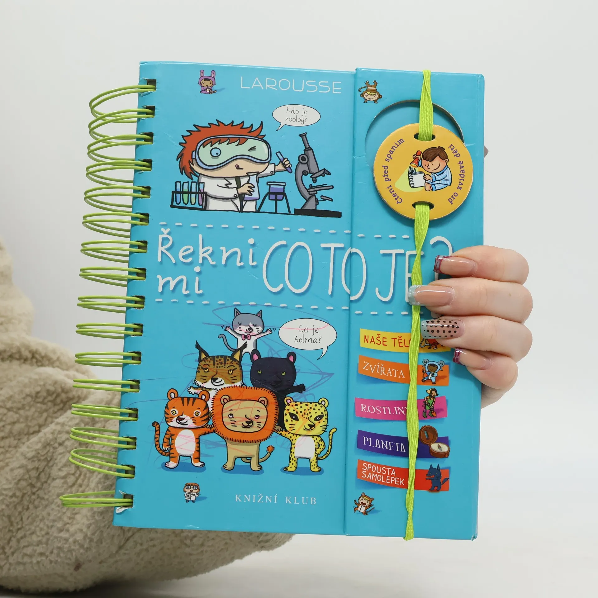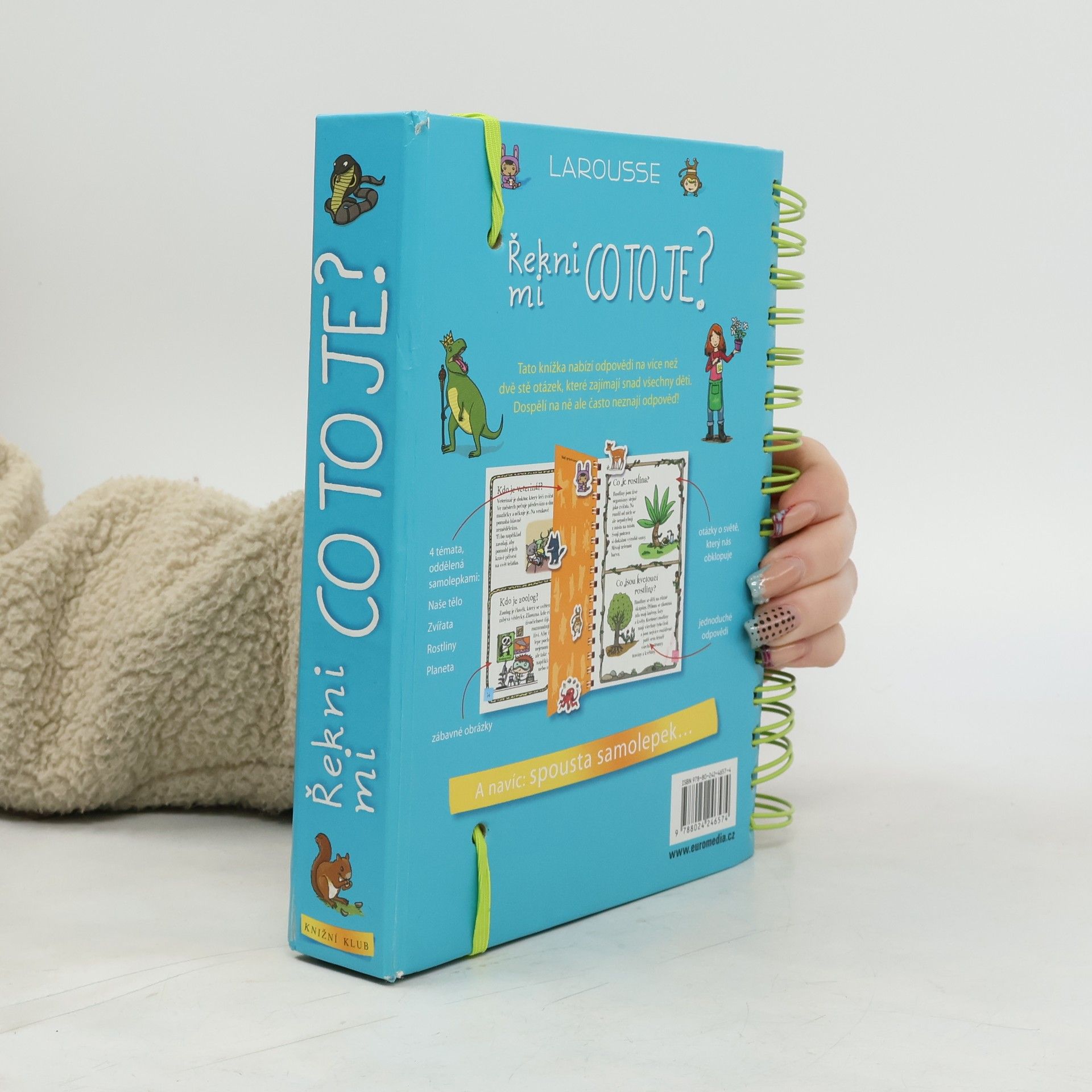Další z úspěšných encyklopedií pro nejmenší (Řekni mi proč, Řekni mi jak) obsahuje odpovědi na více než 200 běžných dětských otázek. Jsou uspořádané podle témat do čtyř velkých oblastí: lidské tělo, zvířata, rostliny, Země. S pomocí této knihy mohou děti zábavným způsobem objevovat svět kolem sebe. Dozvědí se základní informace o fungování svého těla, o rozmanitosti svět zvířat, o životě rostlin a o planetě, na níž žijeme. Každou tematickou kapitolu doplňují samolepky a veselé obrázky.