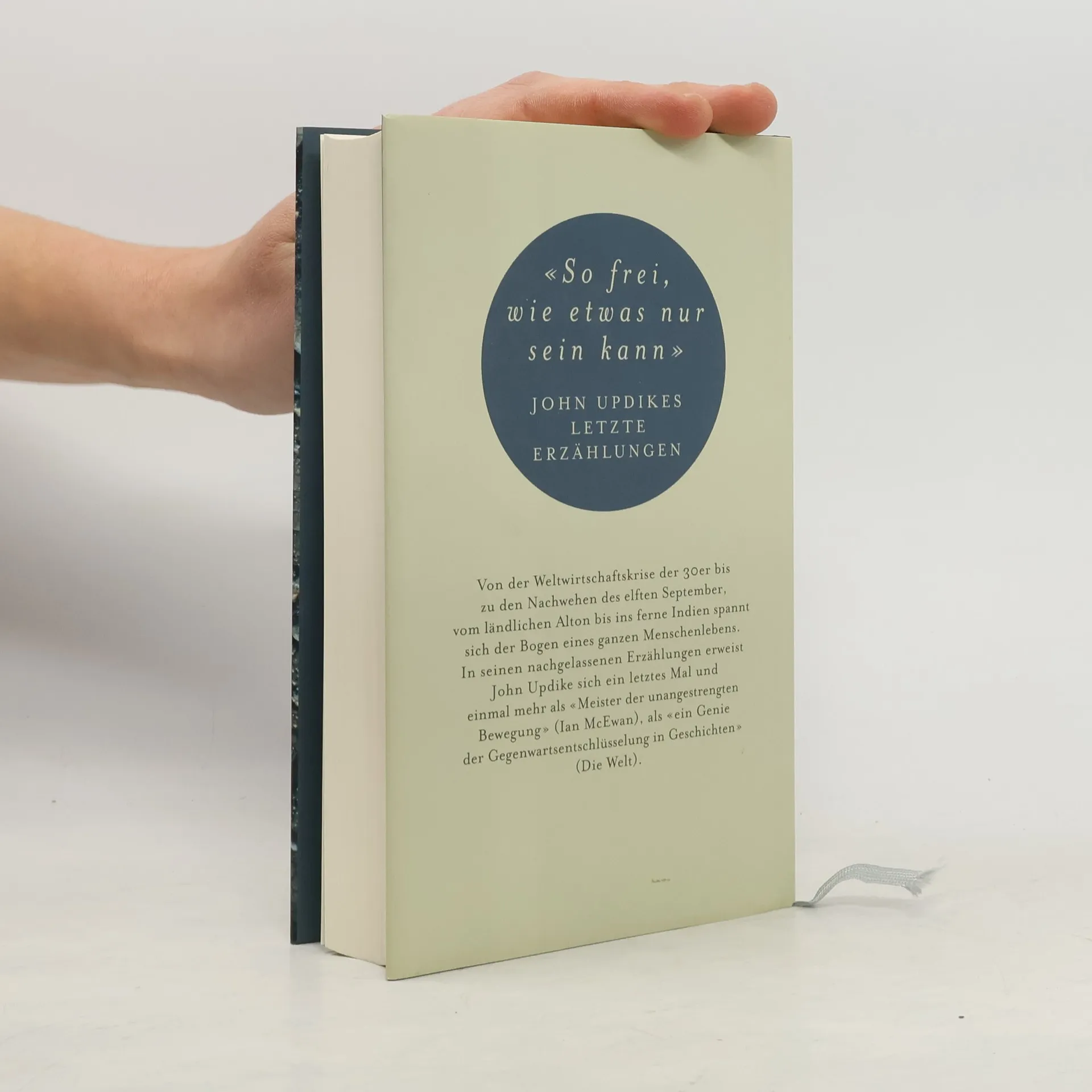 «So frei, wie etwas nur sein kann» John Updikes letzte Erzählungen Von der Weltwirtschaftskrise der 30er bis zu den Nachwehen des elften September, vom ländlichen Alton bis ins ferne Indien spannt sich der Bogen eines ganzen Menschenlebens. In seinen nachgelassenen Erzählungen erweist John Updike sich ein letztes Mal und einmal mehr als «Meister der unangestrengten Bewegung» (Ian McEwan), als «ein Genie der Gegenwartsentschlüsselung in Geschichten» (Die Welt).