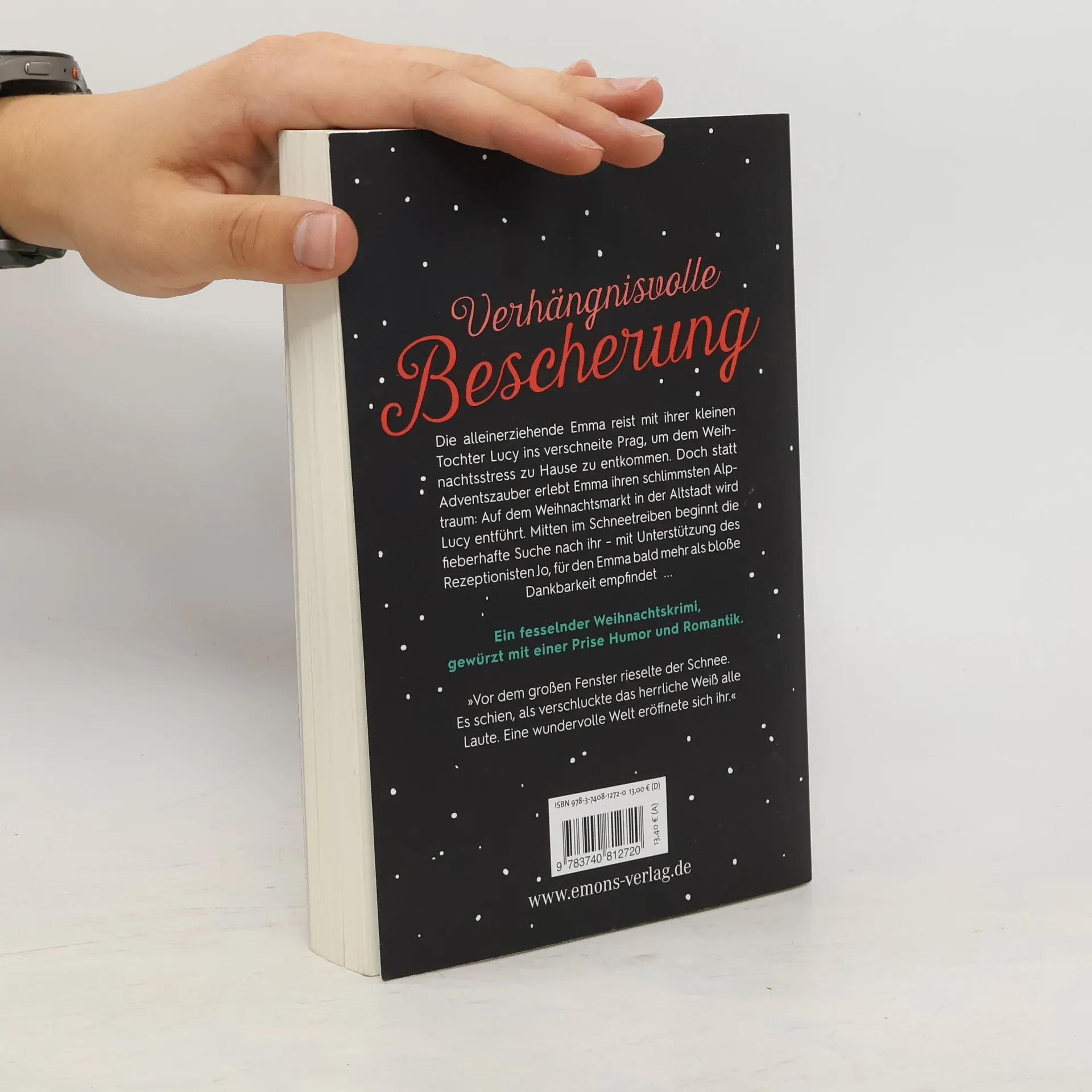 Ein fesselnder Weihnachtskrimi, gewürzt mit einer Prise Humor und Romantik. Die alleinerziehende Emma reist mit ihrer kleinen Tochter Lucy ins verschneite Prag, um dem Weihnachtsstress zu Hause zu entkommen. Doch statt Adventszauber erlebt Emma ihren schlimmsten Alptraum: Auf dem Weihnachtsmarkt in der Altstadt wird Lucy entführt. Mitten im Schneetreiben beginnt die fieberhafte Suche nach ihr – mit Unterstützung des Rezeptionisten Jo, für den Emma bald mehr als bloße Dankbarkeit empfindet ...