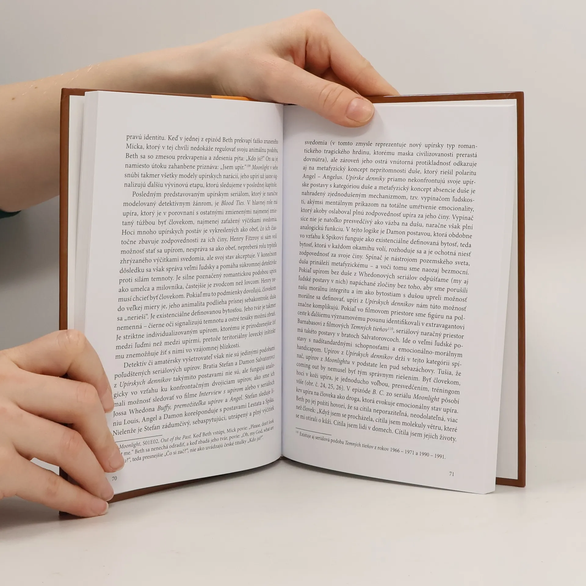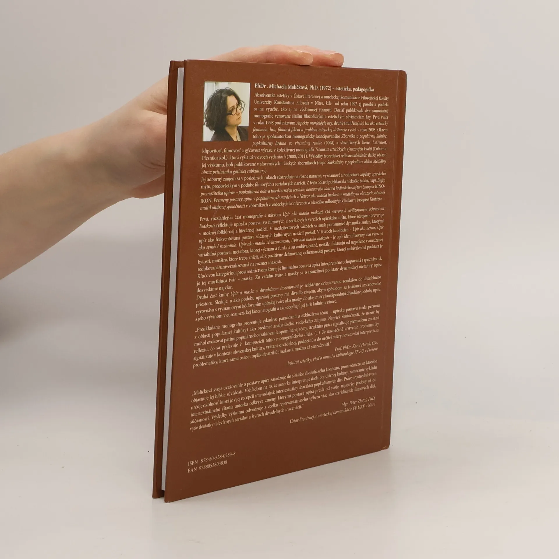 Prvá, rozsiahlešia časť monografie, reflektuje upírsku postavu vo filmových a seriálových verziách upírskeho mýtu, ktoré zdrojovo preveruje v možnej folklórnej a literárnej tradícii. V medzitextových väzbách sa snaží porozumieť dynamike zmien, ktorými upír ako frekventovaná postava súčasných kultúrnych narácií prešiel. V štyroch kapitolách - je upír identifikovaný ako výrazne variabilná postava, metafora, ktorej význam a funkcia sú ambivalentné, nestále, fluktuujú od negatívne vymedzenej bytosti, monštrá, ktoré treba zničiť, až k pozitívne definovanej ochranárskej postave, ktorej ambivalentná podstata je redukovaná/univerzalizovaná na rozmer inakosti. Kľúčovou kategóriou, prostredníctvom ktorej je liminálna postava upíra interpretačne uchopovaná a spoznávaná, je jej morfujúca tvár - maska. Zo vzťahu tváre a masky sa o tranzitnej podstate dynamickej metafory upíra dozvedáme najviac. Druhá časť knihy je selektívne orientovanou sondážou do divadelného priestoru. Sleduje, o akú podobu upírskej postavu má divadlo záujem, akým spôsobom sa javiskové inscenovanie vyrovnáva s významovým kódovaním upírskej tváre ako masky, do akej miery korešpondujú divadelné podoby upíra s jeho vývinom v euroamerickej kinematografii a ako dopĺžajú jej širší kultúrny rámec.