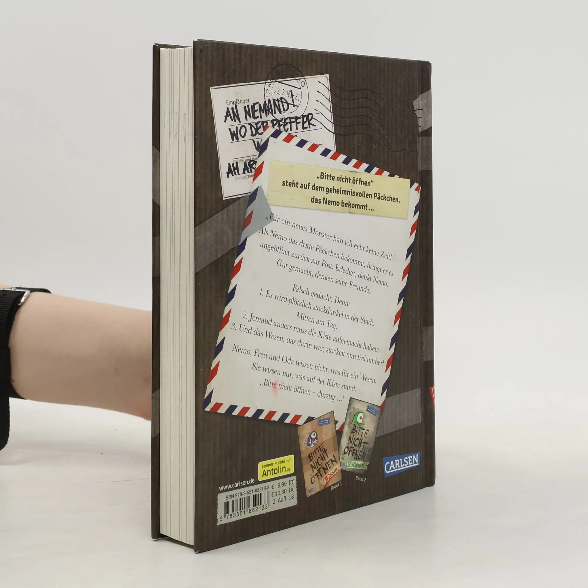 "Bitte nicht öffnen!" steht auf dem geheimnisvollen Päckchen, das Nemo bekommt. Also macht Nemo es auf ...BITTE NICHT ÖFFNEN, BAND 3: „Für ein neues Monster hab ich echt keine Zeit!“ Als Nemo das dritte Päckchen bekommt, bringt er es ungeöffnet zurück zur Post. Erledigt, denkt Nemo. Gut gemacht, denken seine Freunde. Falsch gedacht. Denn: 1. Es wird plötzlich stockdunkel in der Stadt. Mitten am Tag.2. Jemand anders muss die Kiste aufgemacht haben!3. Und das Wesen, das darin war, stöckelt nun frei umher!Nemo, Fred und Oda wissen nicht, was für ein Wesen. Sie wissen nur, was auf der Kiste stand: „Bitte nicht öffnen – durstig …“Nach dem Kinderbuch-Bestseller-Erfolg von Band 1 und 2 nun endlich da: ein neues lustiges und turbulentes Abenteuer rund um Schule, Freundschaft und ein verlorenes Wesen, das nach Hause will! ***Voller überraschender Wendungen, Sprachwitz und mit vielen Bildern vom unverwechselbaren Fréderic Bertrand. ***Das perfekte Buch für Jungs und Mädchen – und ihre Eltern! ***