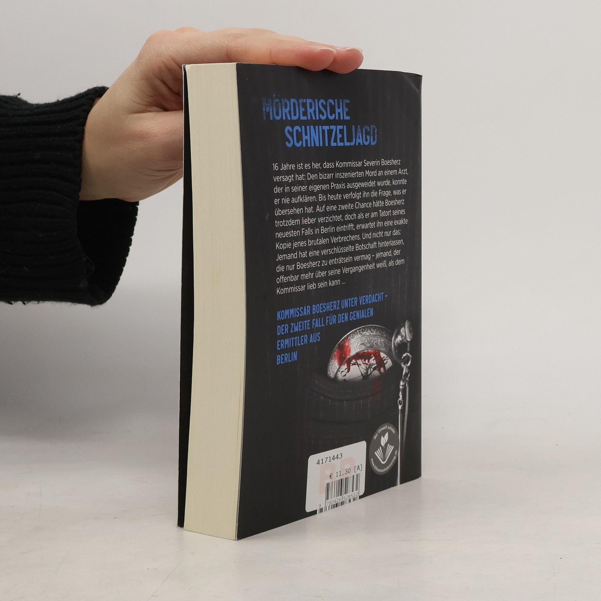 Mörderische Schnitzeljagd in Berlin – Fall 2 für Kommissar Severin Boesherz Im 2. Boesherz-Thriller von Bestseller-Autor Vincent Kliesch (u. a. »Auris«) wird der geniale Kommissar von den dunkelsten Seiten seiner Vergangenheit eingeholt. 16 Jahre ist es her, dass Kommissar Severin Boesherz versagt hat: Den bizarr inszenierten Mord an einem Arzt, der in seiner eigenen Praxis ausgeweidet wurde, konnte er nie aufklären. Bis heute verfolgt ihn die Frage, was er übersehen hat. Auf eine zweite Chance hätte Boesherz trotzdem lieber verzichtet, doch als er am Tatort seines neuesten Falls in Berlin eintrifft, erwartet ihn eine exakte Kopie jenes brutalen Verbrechens. Und nicht nur das: Jemand hat eine verschlüsselte Botschaft hinterlassen, die nur Boesherz zu enträtseln vermag – jemand, der offenbar mehr über seine Vergangenheit weiß, als dem Kommissar lieb sein kann … Seinen ersten Fall löst der ebenso eigenwillige wie hochintelligente Kommissar Severin Boesherz in Vincent Klieschs hartem Thriller »Bis in den Tod hinein«. Boesherz' Kollegin Olivia Holzmann ist die leitende Ermittlerin im Thriller »Im Auge des Zebras«, dem Auftakt einer neuen Reihe.