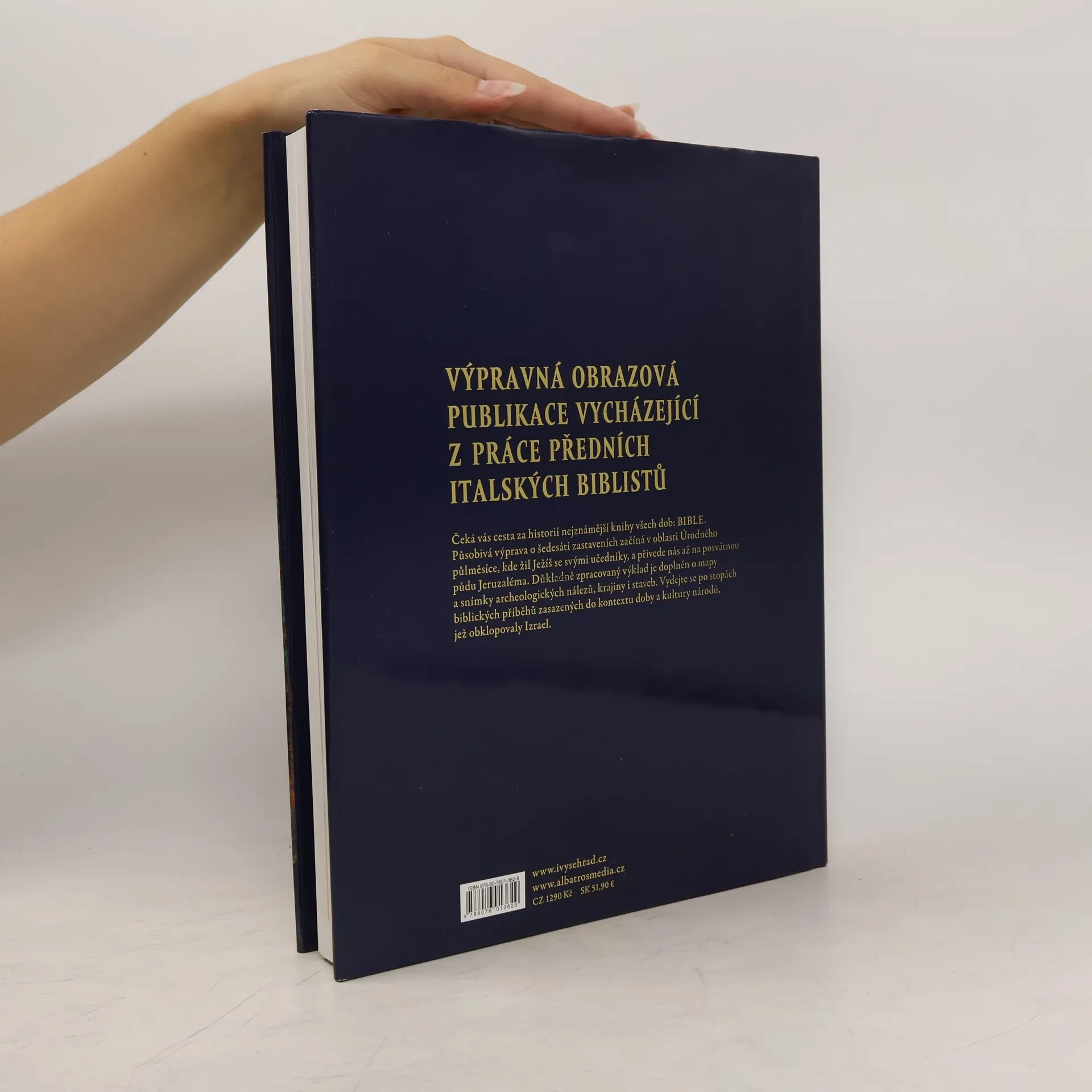 Výpravná obrazová publikace vycházející z práce předních italských biblistů. Čeká vás cesta za historií nejznámější knihy všech dob: Bible. Působivá výprava o šedesáti zastaveních začíná v oblasti Úrodného půlměsíce, kde žil Ježíš se svými učedníky, a pokračuje až na posvátnou půdu Jeruzaléma. Důkladně zpracovaný výklad je doplněn o mapy a snímky archeologických nálezů, krajiny i staveb. Vydejte se po stopách biblických příběhů zasazených do kontextu doby a kultury národů, jež obklopovaly Izrael.
