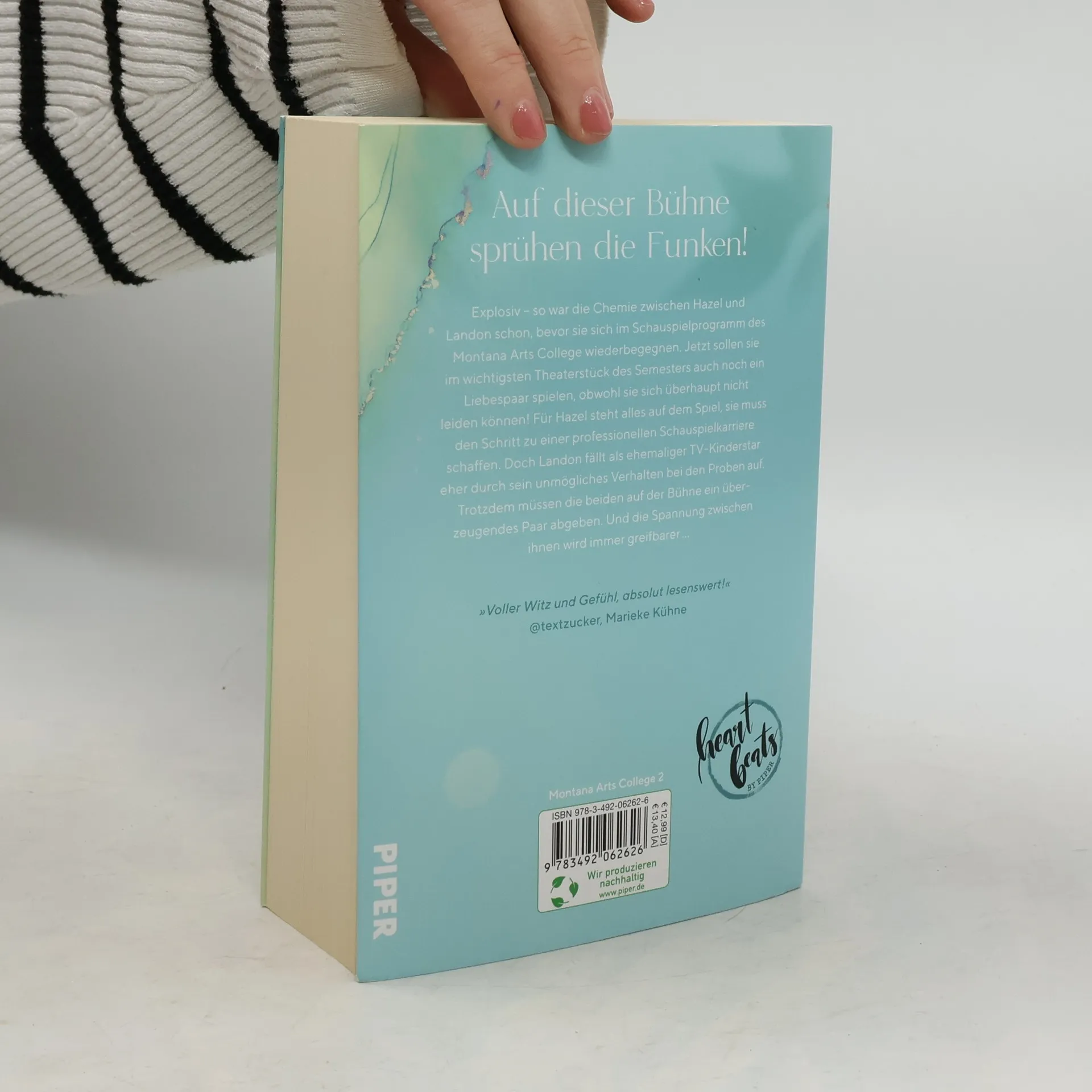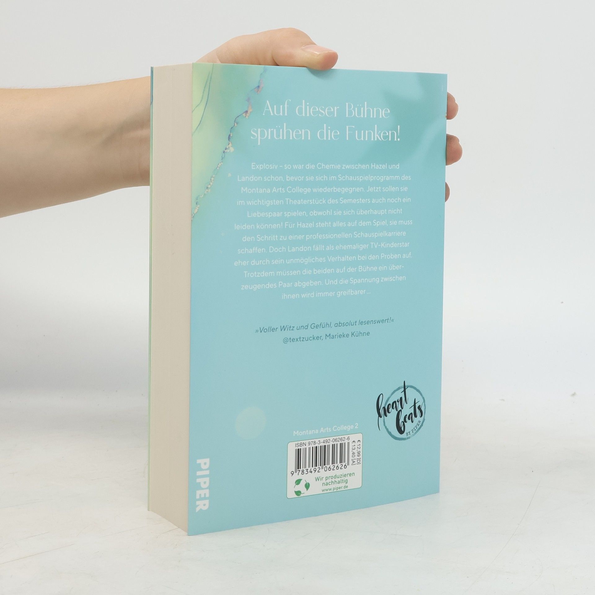 Auf dieser Bühne sprühen die Funken! Mit ihrer explosiven Chemie haben Hazel und Landon schon vor der Aufnahmeprüfung ins Schauspielprogramm die Glühbirnen zum Durchbrennen gebracht – jetzt sollen sie auf der Bühne ein Liebespaar spielen, obwohl sie sich nicht leiden können! Für Hazel steht alles auf dem Spiel, sie muss den Schritt zu einer professionellen Schauspielkarriere schaffen. Doch Landon fällt als ehemaliger TV-Kinderstar eher durch Skandale und sein unmögliches Verhalten bei den Proben auf. Trotzdem müssen die beiden auf der Bühne ein überzeugendes Paar abgeben. Und die Spannung zwischen ihnen wird immer greifbarer … »Julia K. Stein hat dieses einzigartige Talent, mich gleichzeitig zum Lachen, Fluchen und Weinen zu bringen. Intelligent, voller Gefühl und mit so viel originellem Witz schreibt sie sich mit jedem neuen Buch in mein Leserherz!« Spiegel-Bestsellerautorin Stella Tack Das Zentrum der Reihe bildet das Montana Arts College, ein prestigeträchtiges College mit Schwerpunkt in den darstellenden Künsten. In der Abgeschiedenheit Montanas sollen die Studenten sich auf die Ausbildung ihrer Talente in Tanz, Schauspiel, Film und Kreativem Schreiben konzentrieren. Doch die Natur am Rande der Rocky Mountains ist gewaltiger, die Gefühle intensiver – und das führt nicht nur zu ausdrucksstarker Kunst, sondern auch zu intensivem Funkenflug zwischen den Studenten …