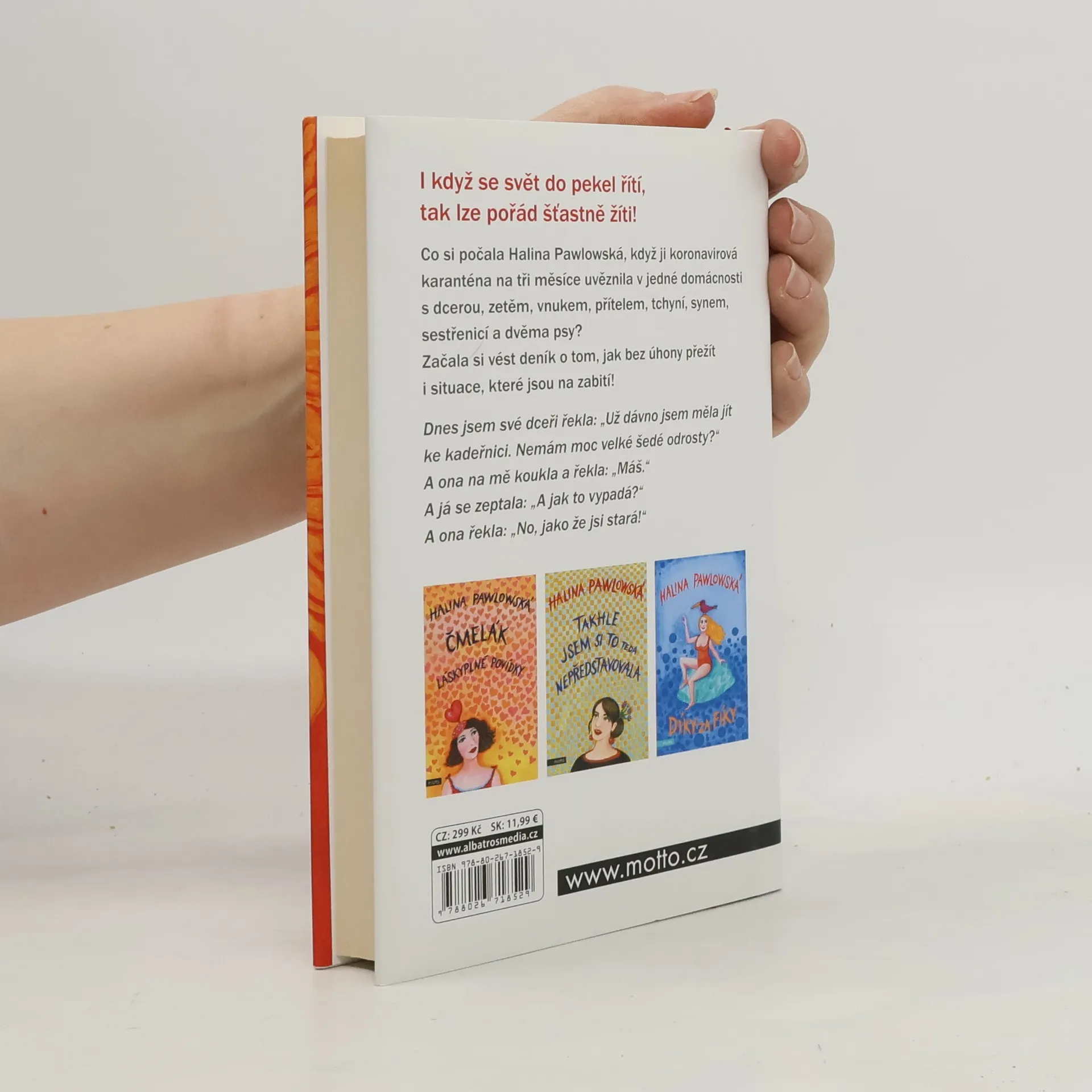 Populární česká autorka nabízí čtenářům drobné úsměvné příběhy a svérázné rady do života, tentokrát z prostředí koronavirové karantény. Ani v té nejsvízelnější situaci by člověka neměl opustit smysl pro humor. Autorka líčí příhody z doby, kdy se s rodinou ocitla v izolaci kvůli pandemii. Sedm lidí, každý s jinými stravovacími nároky a návyky, usilovná snaha se nezbláznit a najít na tom všem něco pozitivního - tak by se dal krátce shrnout soubor povídek a historek, zakončený tuctem receptů.