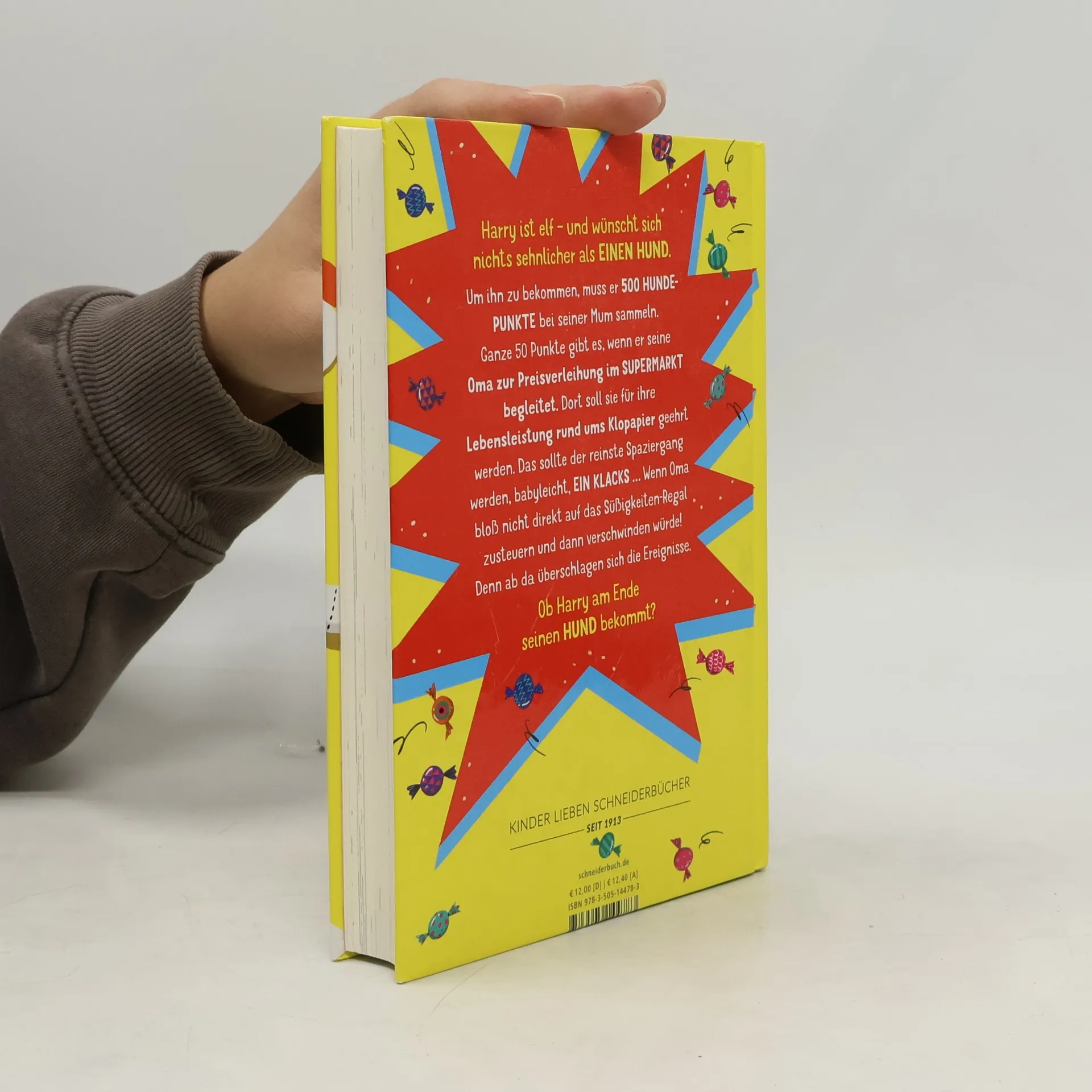 Gib der Oma keinen Zucker! Harry ist elf, riesengroß für sein Alter (alle seine Freunde nennen ihn „Harry, den Hulk“) – und er wünscht sich nichts sehnlicher als einen Hund. Um sich diesen Wunsch zu erfüllen, muss er 500 Hündchen-Punkte sammeln, die seine Mom für die unterschiedlichsten Aufgaben verleiht. Zum Beispiel schreibt sie ganze 50 Punkte dafür aus, dass Harry seine Oma zur Preisverleihung im örtlichen Supermarkt begleitet. Dort soll sie für ihre Lebensleistung rund ums Toilettenpapier feierlich geehrt und ausgezeichnet werden. Das sollte der reinste Spaziergang werden, ein Kinderspiel, ein Klacks … Wenn Oma bloß nicht ihren eigenen Kopf hätte! Kaum hat sie das Süßigkeiten-Regal ins Visier genommen, überschlagen sich die Ereignisse … Eine brüllend komische Geschichte voller haarsträubender Begebenheiten! Mit zahlreichen Illustrationen im Comic-Stil, perfekt geeignet für den Leseeinstieg! Vom absolut genialen Slapstick-Talent Jo Simmons!
