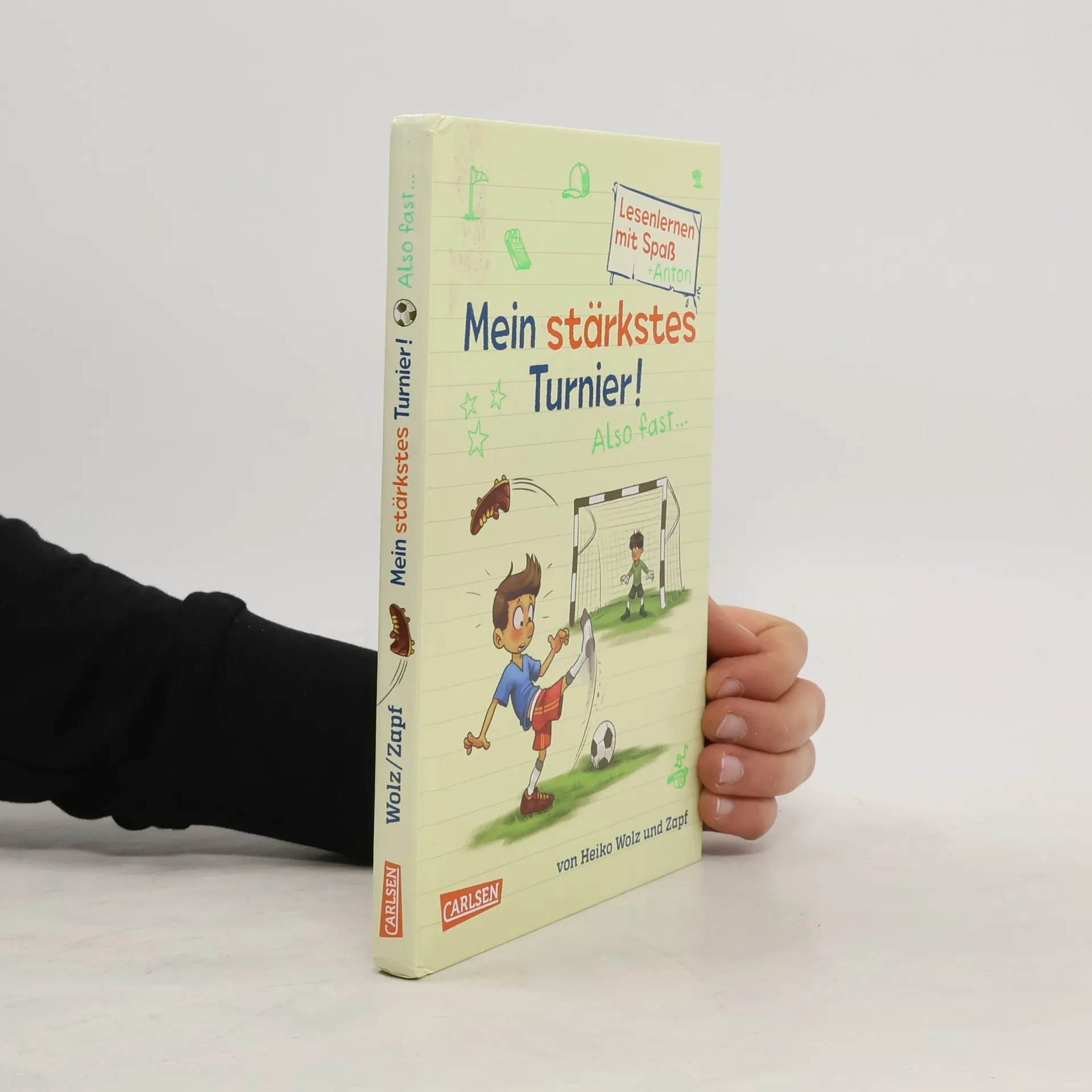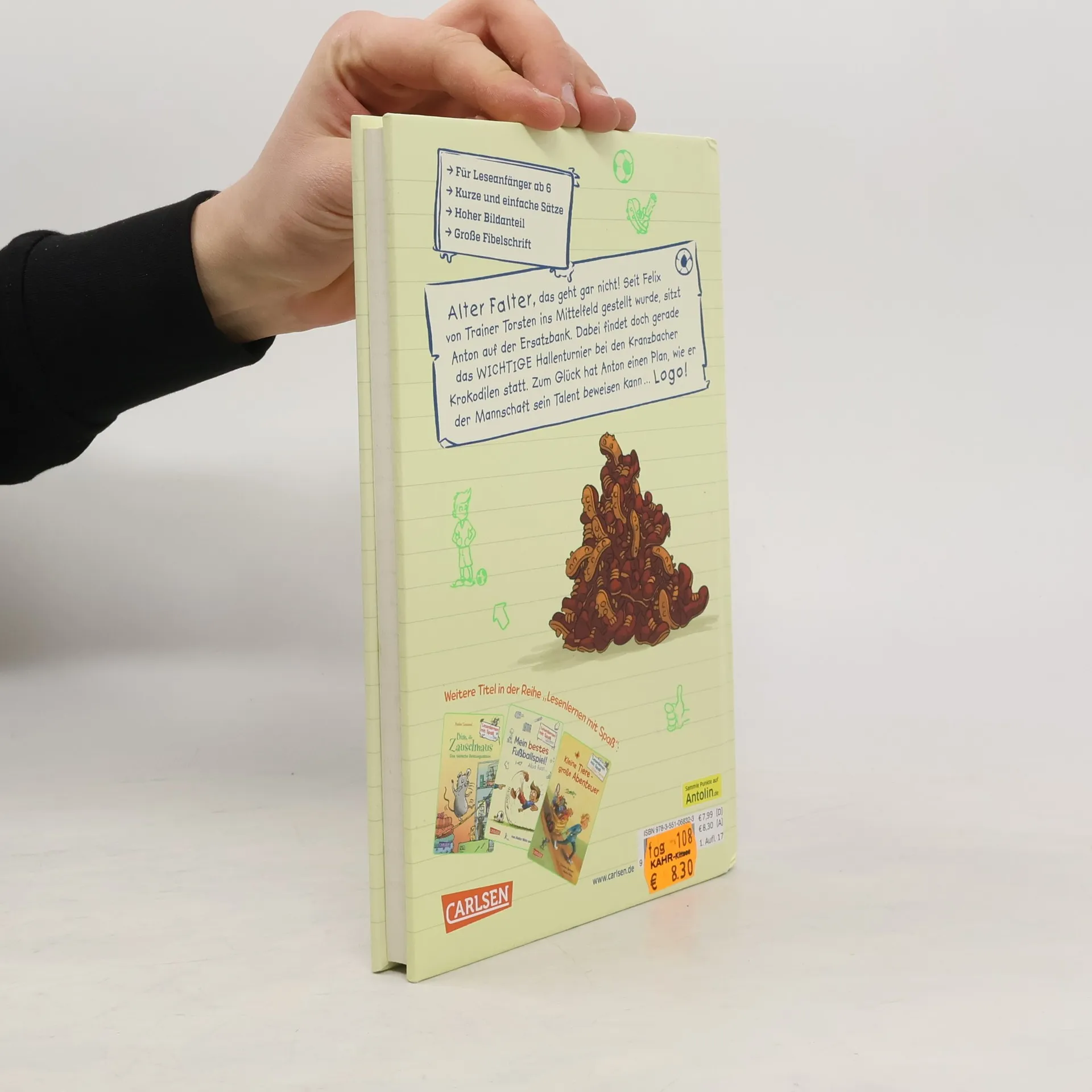 Alter Falter, das geht gar nicht! Seit Trainer Torsten Felix vom Tor ins Mittelfeld gestellt hat, sitzt Anton auf der Ersatzbank. Dabei findet doch gerade das WICHTIGE Hallenturnier bei den Kranzbacher Krokodilen statt. Zum Glück hat Anton einen Plan, wie er der Mannschaft sein Talent beweisen kann ... Logo!