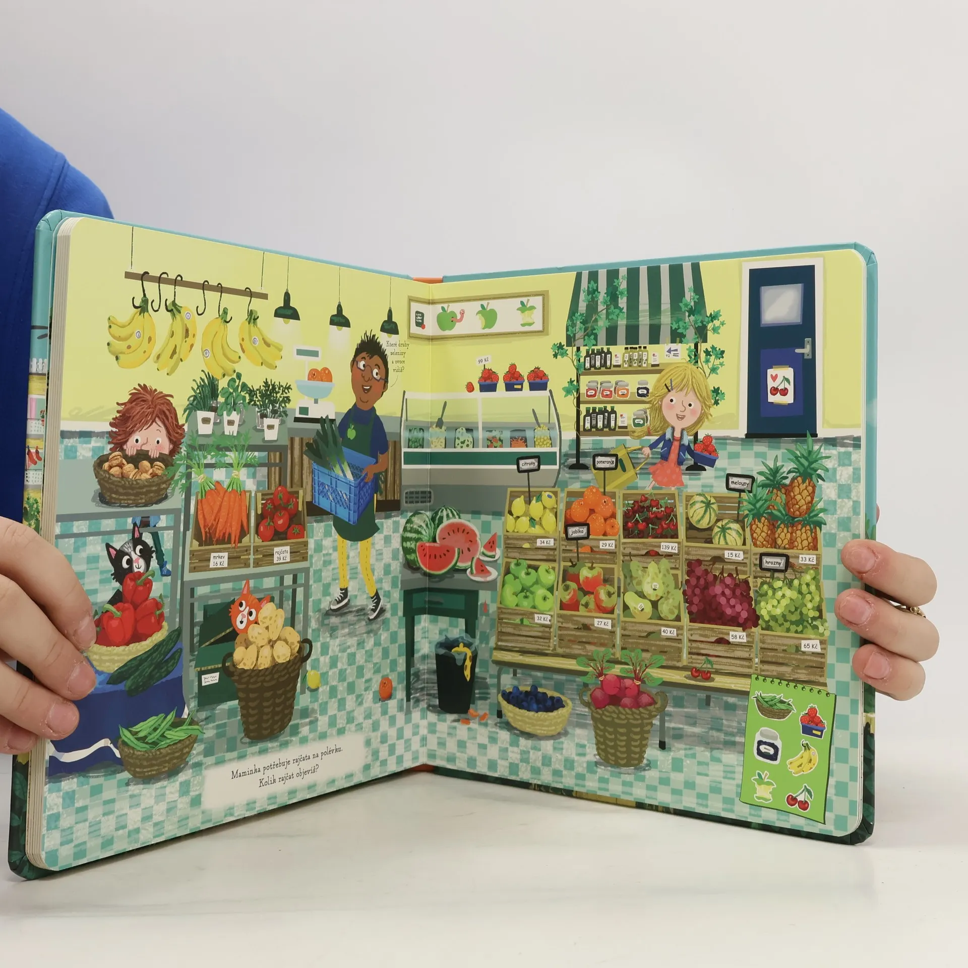 Kačka a Matěj bydlí vedle sebe v ulici Na schovávané v nejhezčí čtvrti ve městě a mají pořád co objevovat, doma i venku. V knížce Kačka a Matěj - hledej v obrázcích, určené zejména nejmenším čtenářům, děti najdou na každé dvojstraně základní seznam věcí, které mohou v obrázku hledat, ale kouzelné detailní ilustrace toho k objevování a počítání nabízejí mnohem víc.
