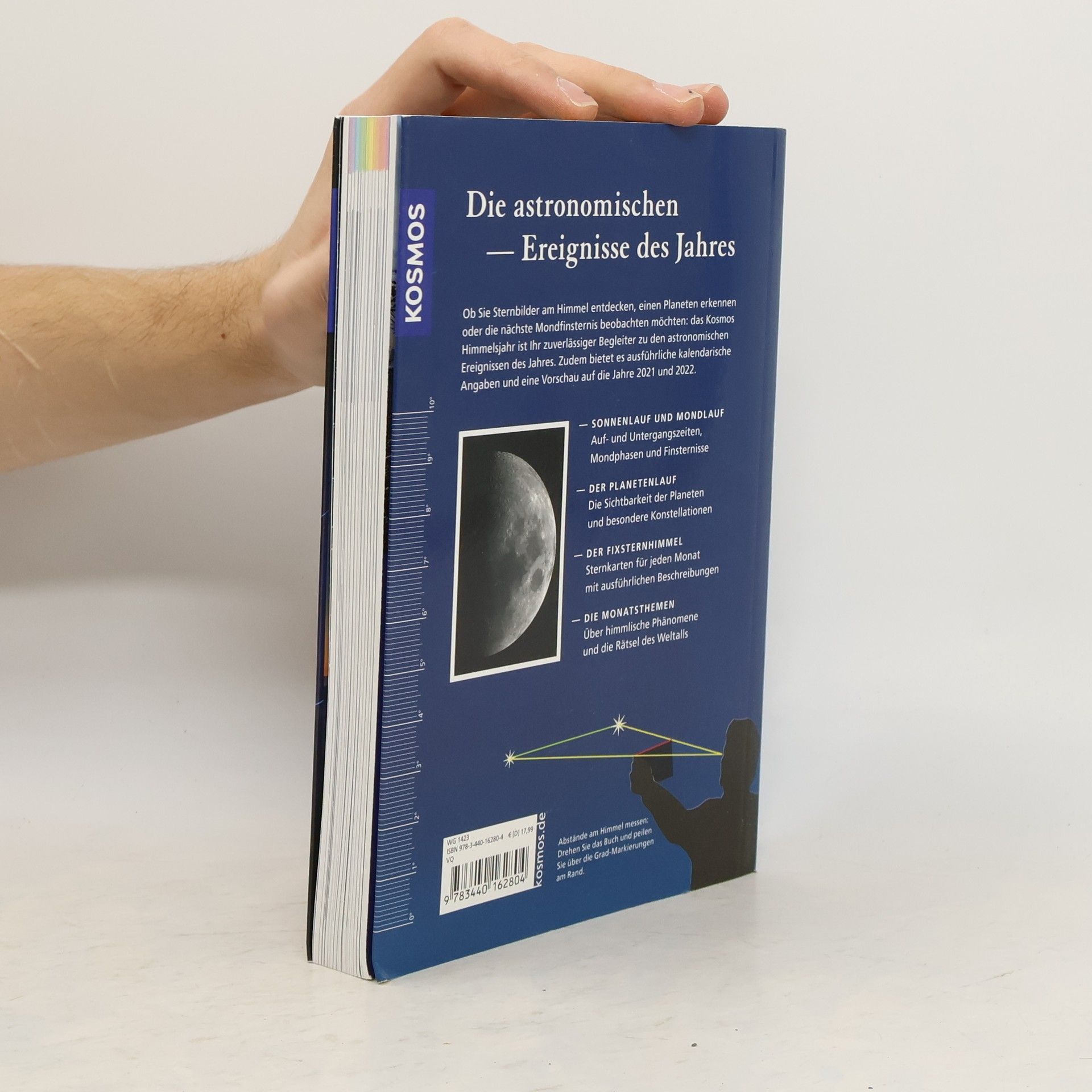 Sternbilder am Himmel entdecken, Planeten erkennen oder die nächste Mondfinsternis beobachten – das KOSMOS Himmelsjahr ist der zuverlässige Wegweiser zu den astronomischen Ereignissen des Jahres. Kalenderdaten: der Beginn der Jahreszeiten, alle Fest- und Feiertage sowie chronologische Angaben. Sonne und Mond: Auf- und Untergangszeiten, Stellung im Tierkreis, tägliche Mondphasen und Finsternisse. Planetenlauf: Bahn der Planeten durch die Sternbilder, wann man sie sehen kann und wo sie sich treffen. Sterne und Sternbilder: mit übersichtlichen Sternkarten, ausführlichen Beschreibungen und Fernrohrtipps. Monatsthemen: spannende Berichte über astronomische Phänomene im Alltag und die Rätsel des Weltalls. Himmlische Highlights im Jahr 2020: Wandelsterne.