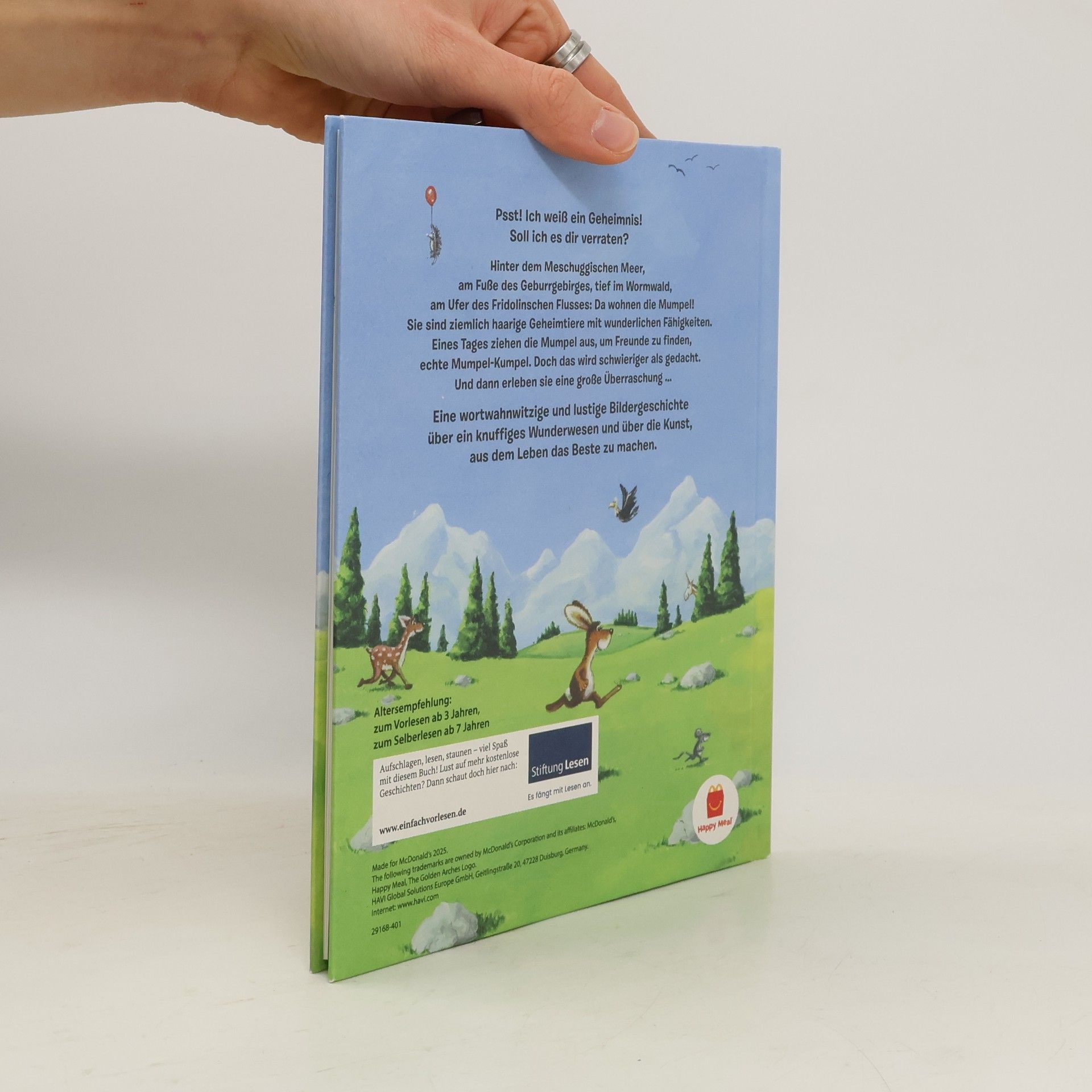 Psst! Ich weiß ein Geheimnis! Soll ich es dir verraten? Dann hör gut zu. Wer ist Schuld, wenn was schief geht? Na klar: der Mumpel-Kumpel. Wo der wohnt? Hinter dem Meschuggischen Meer, am Fuße des Geburrgebirges, tief im Wormwald, am Ufer des Fridolinschen Flusses. Der Mumpel ist ein haariges und völlig unerforschtes Geheimtier mit wunderlichen Fähigkeiten. Und ein Mumpel ist nicht allein. Eines Tages ziehen die Mumpel aus, um Freunde zu suchen. Sozusagen Mumpel-Kumpel. Doch die Mission wird schwieriger als gedacht. Und dann finden die Mumpel etwas heraus, das sie nie für möglich gehalten hätten … Eine wortwitzige, lustige und sprachspielerische Bildergeschichte über ein knuffiges Wunderwesen, das man einfach lieben muss, über Freundschaft und über die Kunst, aus dem Leben das Beste zu machen.