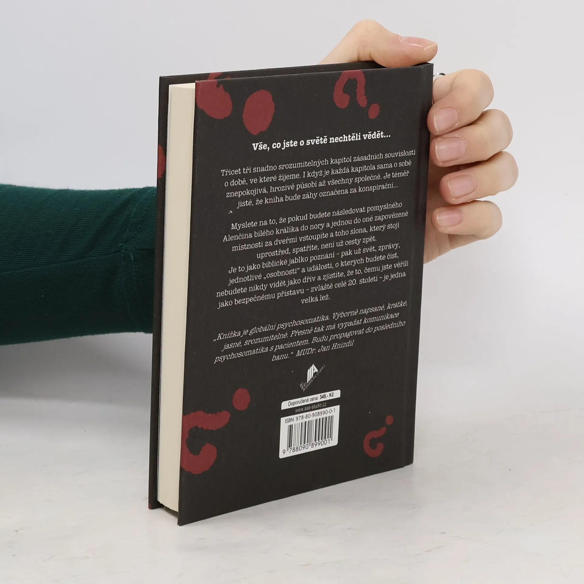 Vše, co jste o světě nechtěli vědět… Třicet tři snadno srozumitelných kapitol zásadních souvislostí o době, ve které žijeme. I když je každá kapitola sama o sobě znepokojivá, hrozivě působí až všechny společně. Je téměř jisté, že kniha bude záhy označena za konspirační… Myslete na to, že pokud budete následovat pomyslného Alenčina bílého králíka do nory a jednou do oné zapovězené místnosti za dveřmi vstoupíte a toho slona, který stojí uprostřed, spatříte, není už cesty zpět. Je to jako biblické jablko poznání – pak už svět, zprávy, jednotlivé „osobnosti“ a události, o kterých budete číst, nebudete nikdy vidět jako dřív a zjistíte, že to, čemu jste věřili jako bezpečnému přístavu – zvláště celé 20. století – je jedna velká lež. „Knížka je globální psychosomatika. Výborně napsané, krátké, jasné, srozumitelné. Přesně tak má vypadat komunikace psychosomatika s pacientem. Budu propagovat do posledního banu.“ MUDr. Jan Hnízdil