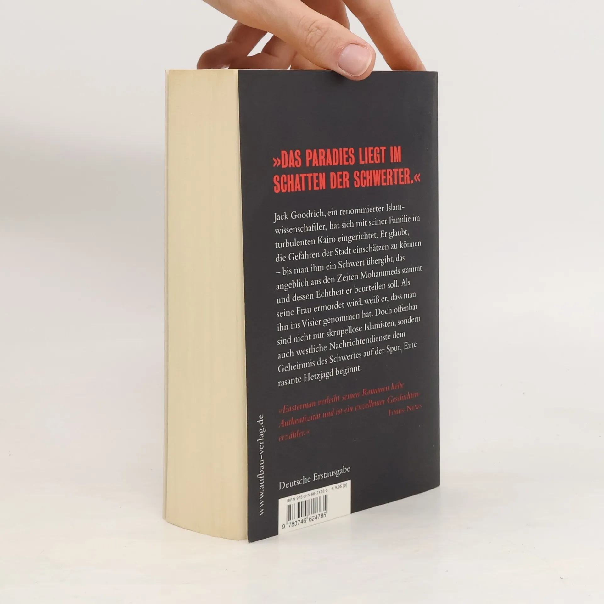 Die Jagd nach dem Schwert des Propheten Professor Goodrich erhält von einem arabischen Buchhändler ein altes Schwert und einen Brief zur Begutachtung. Kurze Zeit später sind seine Frau und seine Tochter tot. Ist es wirklich das Schwert Mohammeds? Islamische Fundamentalisten schrecken vor nichts zurück, um in seinen Besitz zu gelangen. Ein Thriller aus dem heutigen Kairo, wo Moderne und islamischer Fundamentalismus dicht nebeneinander existieren. Rasant, spannend, hart.