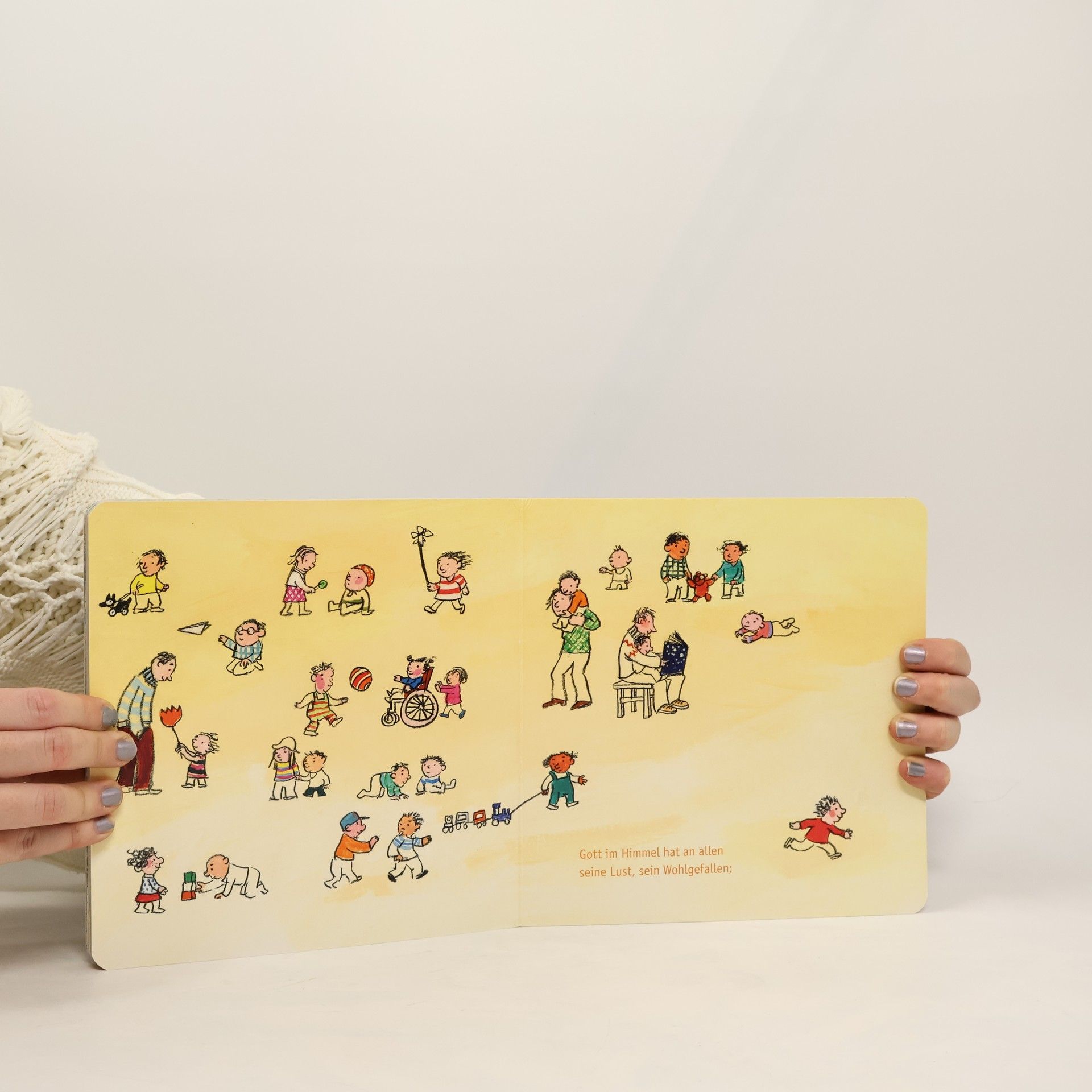 Dass der liebe Gott die unendlich vielen Sterne zählen kann, hat Kinder über viele Generationen hinweg erstaunt und beruhigt. Auch sie wissen sich so himmlisch geborgen. Katja Gehrmann hat das beliebte Einschlaflied des Thüringer Pfarrers Wilhelm Hey mit fröhlichen zarten Bildern neu inszeniert. Wilhelm Hey (1789–1854 ), Pfarrer, Lieder- und Fabeldichter, betreute u. a. ein Heim für die Kinder berufstätiger Mütter. Gegen den theologischen Rationalismus seiner Zeit schrieb er Fabeln für Kinder. Neben „Weißt du, wie viel Sternlein stehen“ ist auch sein Weihnachtslied „Alle Jahre wieder“ bis heute im Evangelischen Gesangbuch zu finden. Gottvertrauen für die Kleinsten – unsere neuen Pappbilderbücher: In Zusammenarbeit mit „Willkommen in Gottes Welt! Eine Aktion des Evangelischen Literaturportals“
