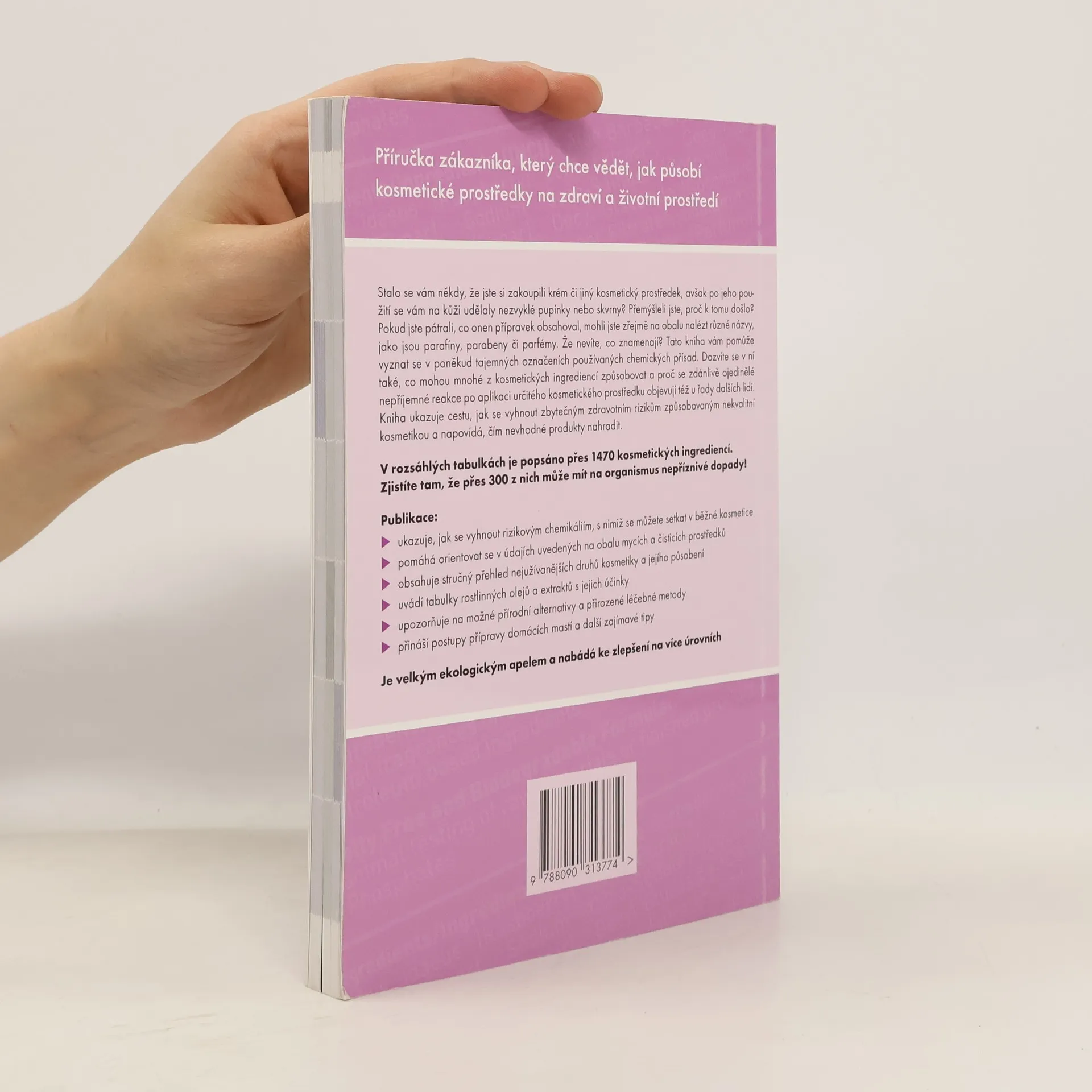 Praktická příručka zákazníka, který chce vědět, jak kosmetické a další prostředky denní péče působí na tělo, duši a okolní přírodu. V prvé řadě má čtenáři pomoci orientovat se v poněkud tajemných označeních použitých přísad, uváděných na obalech běžné kosmetiky. Rozsáhlé tabulky, které tvoří součást této knihy, seznamují s více než 1470 kosmetickými ingrediencemi. Jsou v nich uvedeny potenciální přínosy či rizika každé z nich pro zdraví i životní prostředí a zároveň i jejich číselné hodnocení. Autor poskytuje návod, jak se vyhnout škodlivým sloučeninám a zbytečným zdravotním rizikům, vyplývajícím z užívání nekvalitní kosmetiky. Naznačuje nejen to, čím nahradit nevhodné kosmetické produkty, ale zaměřuje se i na mycí a čisticí prostředky. Kniha zahrnuje rovněž stručný přehled nejužívanějších druhů kosmetiky, možné přírodní alternativy, tabulky rostlinných olejů s jejich účinky a další zajímavé tipy.